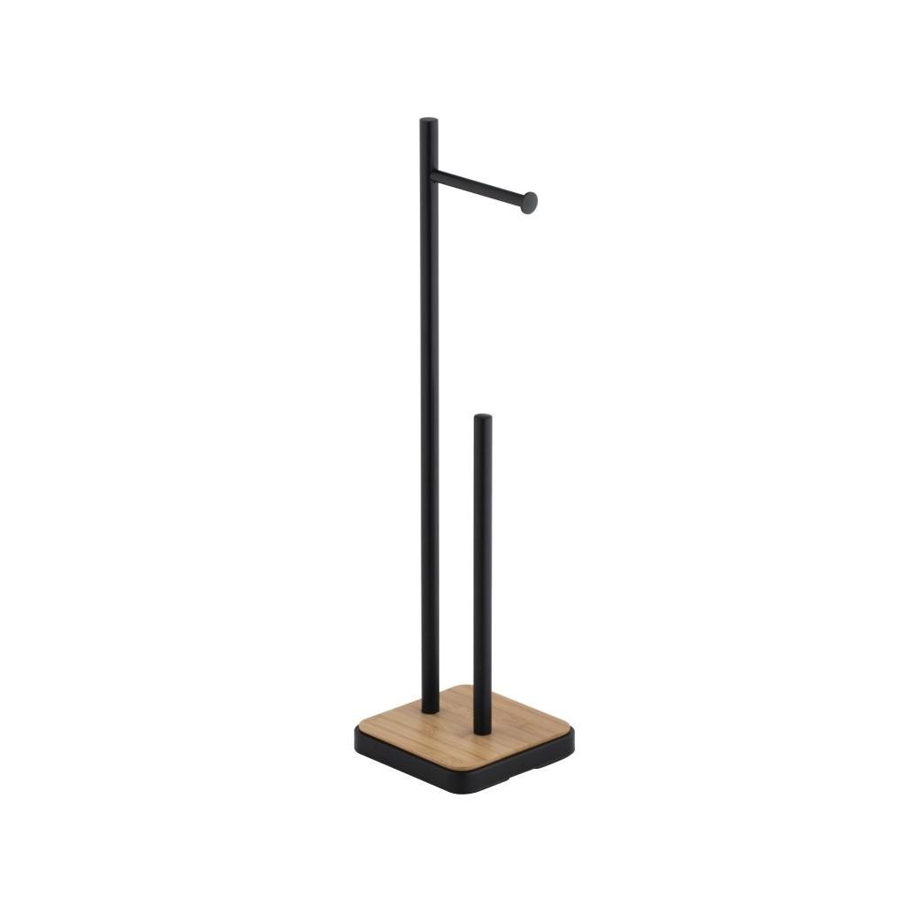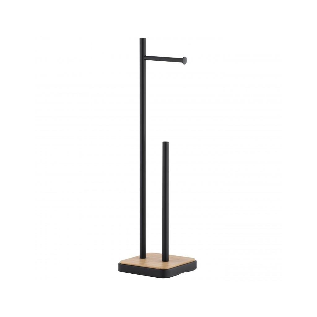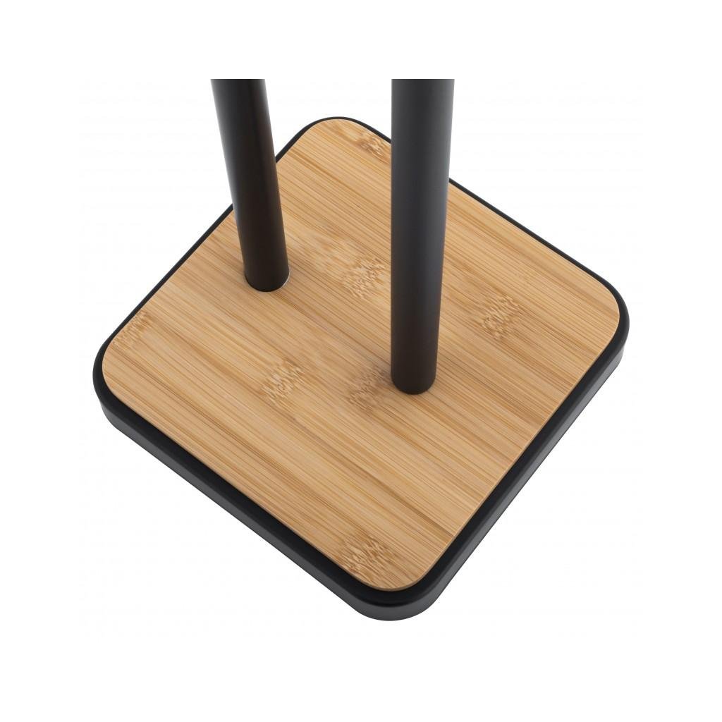 Elegantní stojan na náhradní toaletní papír s držákem na roli navíc. Stojan je vyroben z vysoce kvalitní lakované oceli. Podstavec je vyroben z přírodního bambusového dřeva. Široká základna a plastové podložky poskytují vynikající stabilitu.