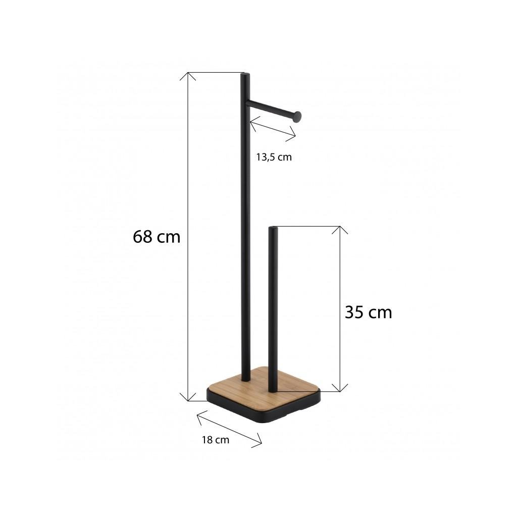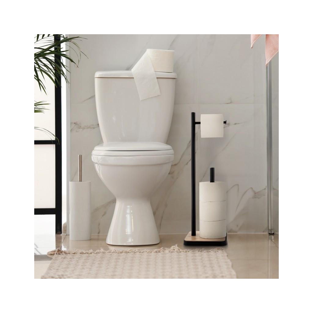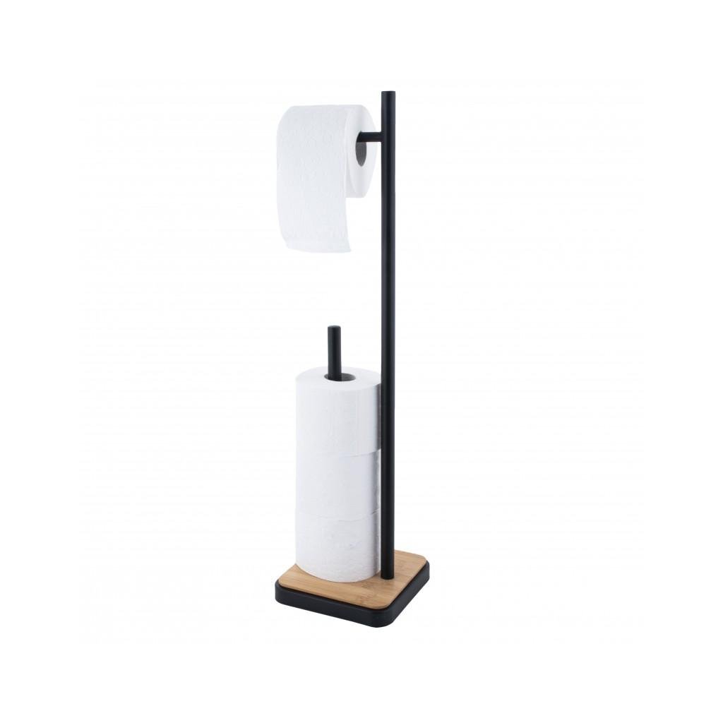 Elegantní stojan na náhradní toaletní papír s držákem na roli navíc. Stojan je vyroben z vysoce kvalitní lakované oceli. Podstavec je vyroben z přírodního bambusového dřeva. Široká základna a plastové podložky poskytují vynikající stabilitu.