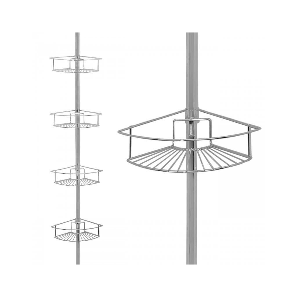 Teleskopická rohová koupelnová police. Instaluje se do sprchového koutu nebo do rohu koupelny. Nabízí dostatek prostoru pro koupelnové potřeby. Má 4 rohové koše na koupelnové doplňky.