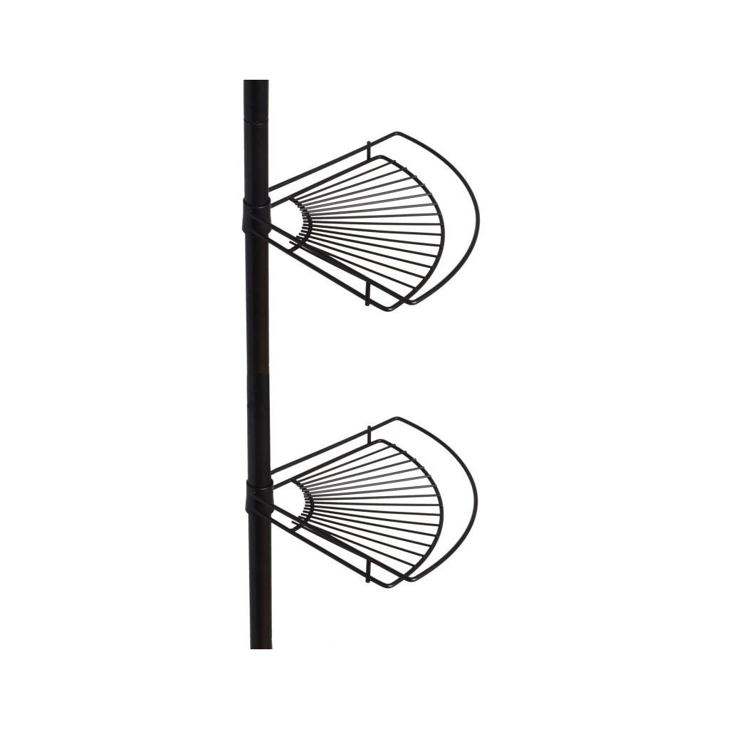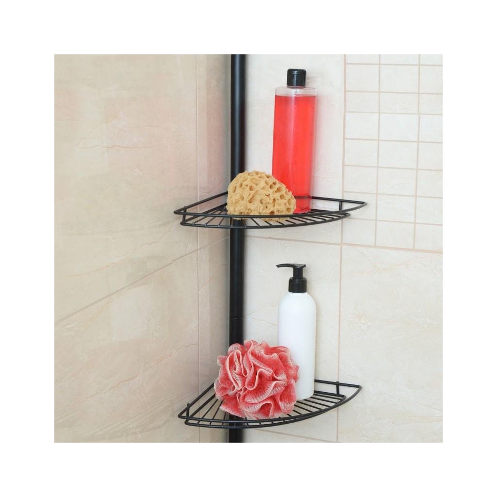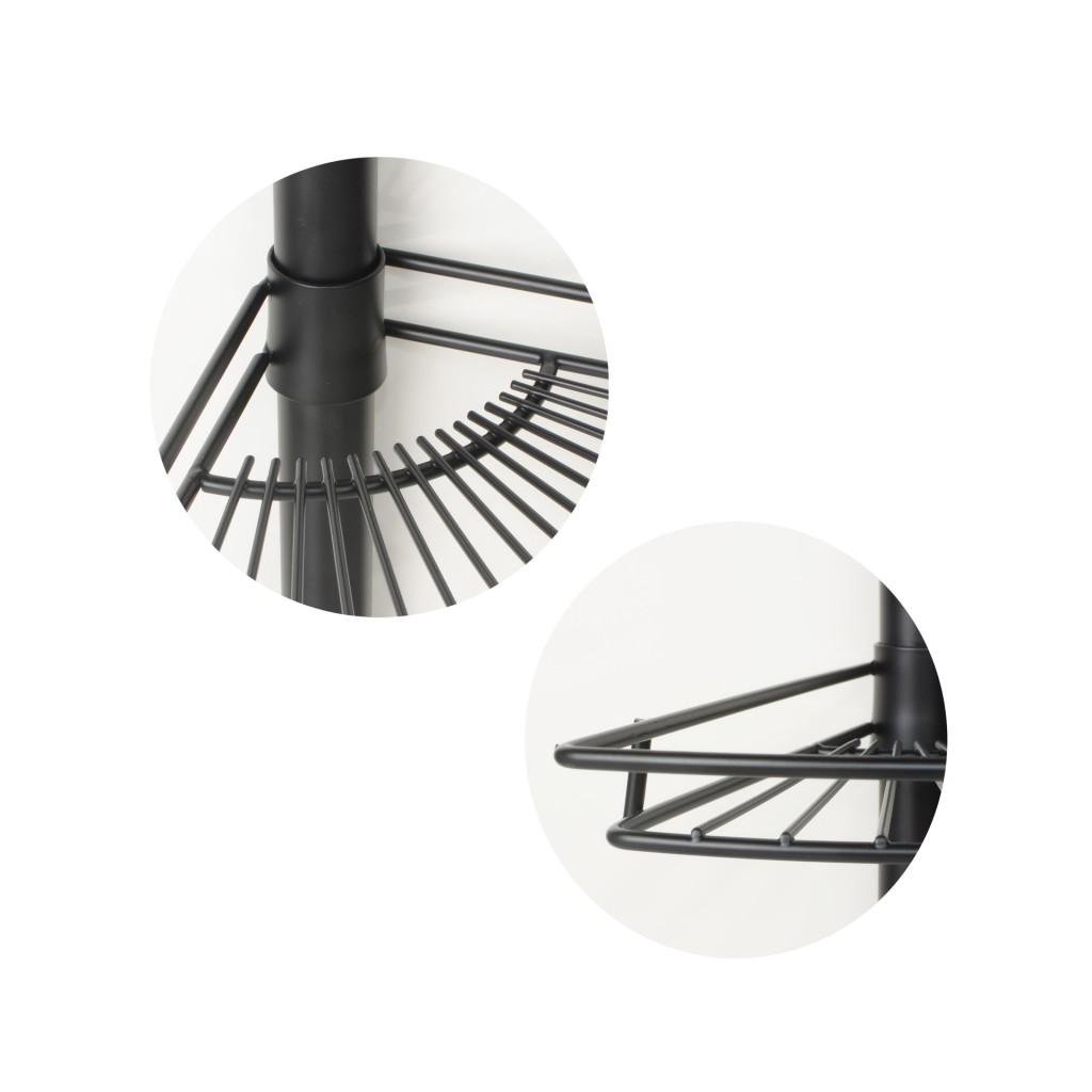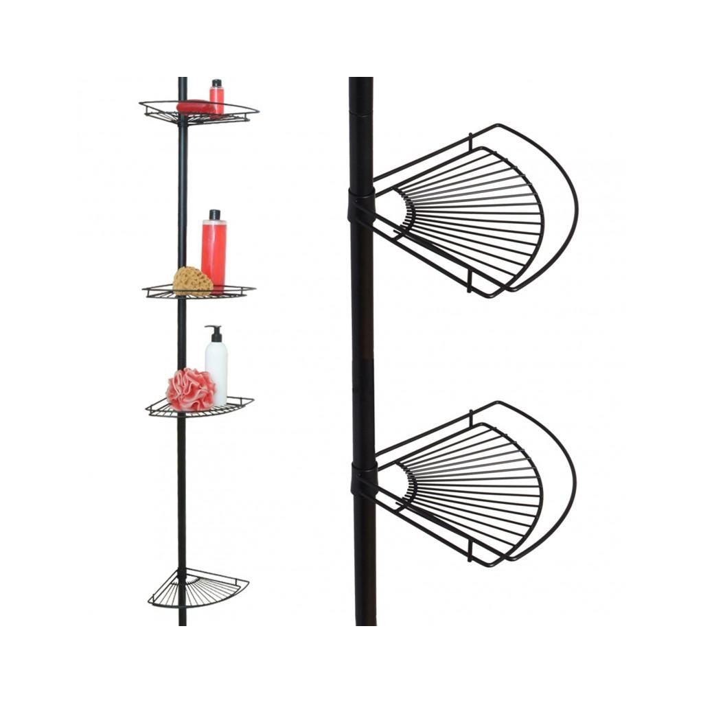 Teleskopická rohová police v černé barvě. Ideální pro instalaci v rohu vany. Vyrobeno z vysoce kvalitní oceli s práškovým nástřikem. Police nabízí dostatek úložného prostoru pro koupelnové potřeby. Má 4 rohové koše-police.