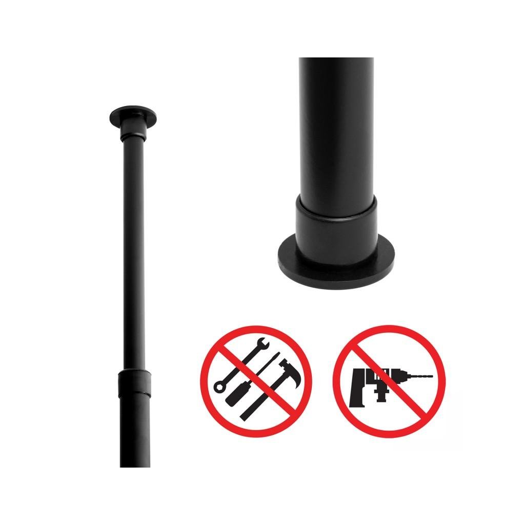 ✔ Instalace bez vrtání a lepení (police se montuje umístěním tyče mezi podlahu a strop)