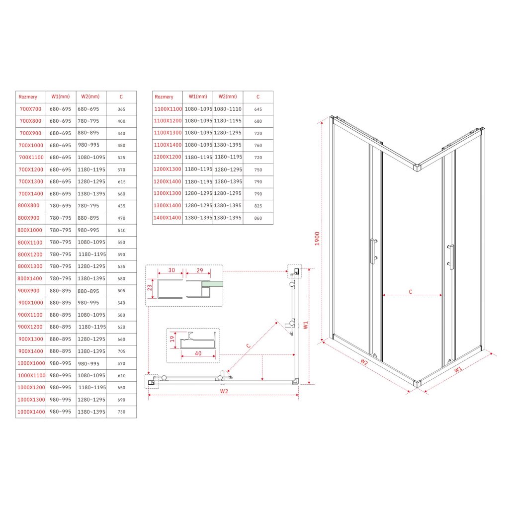 - Typ: rohová sprchová kabina s posuvnými dveřmi