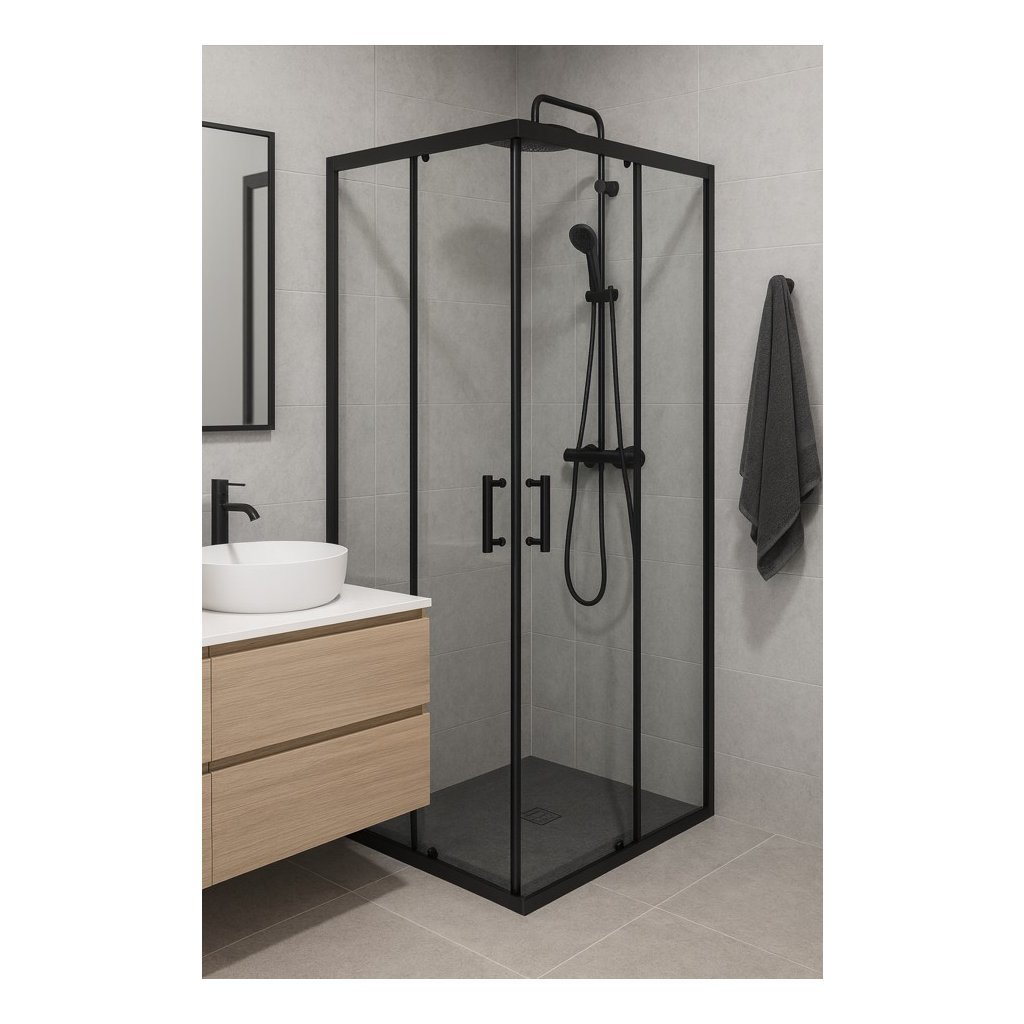 - Typ: rohová sprchová kabina s posuvnými dveřmi