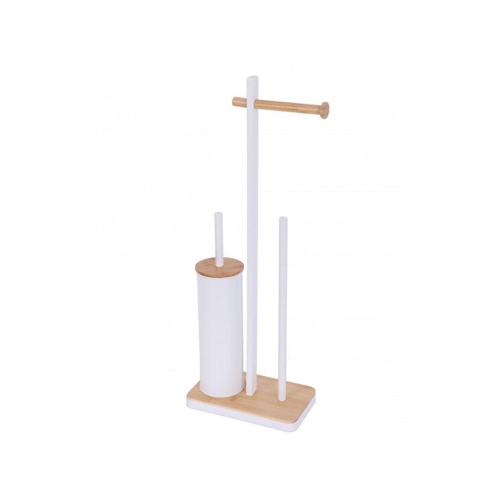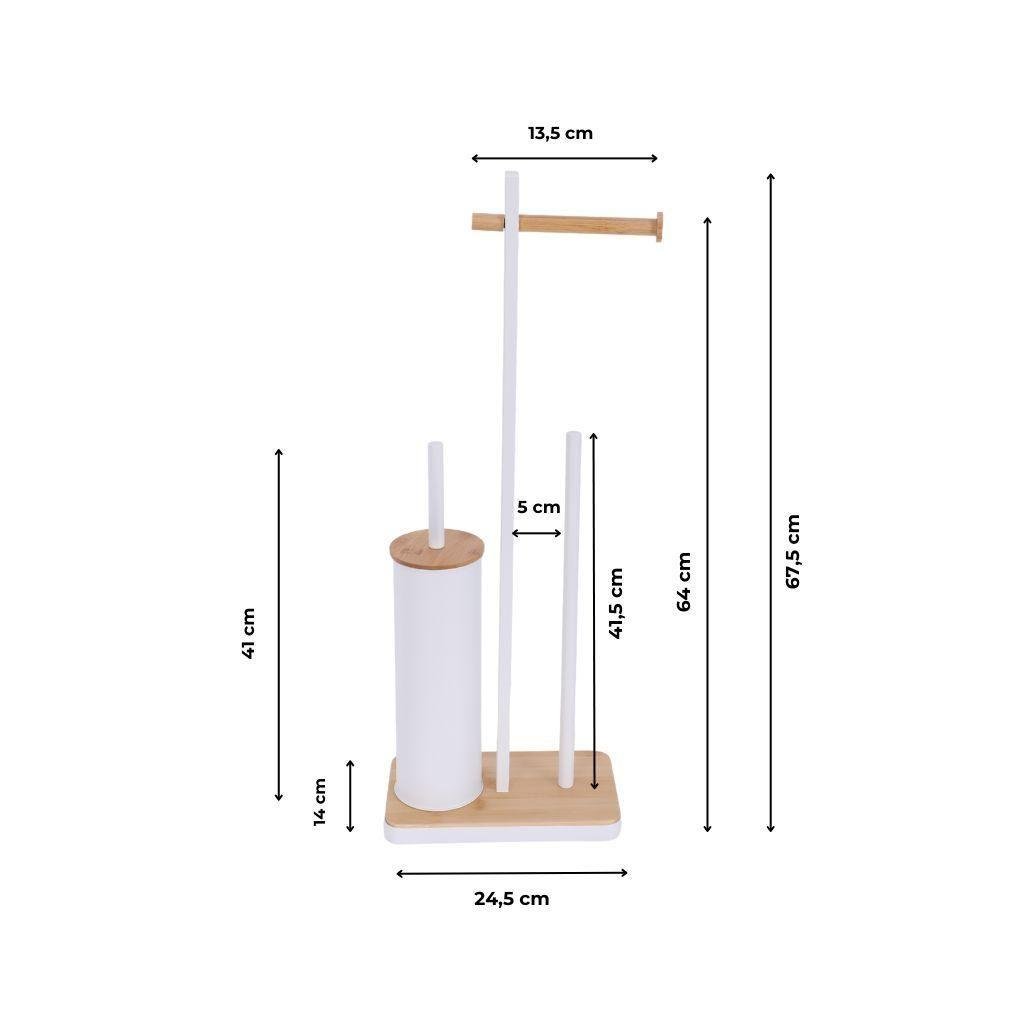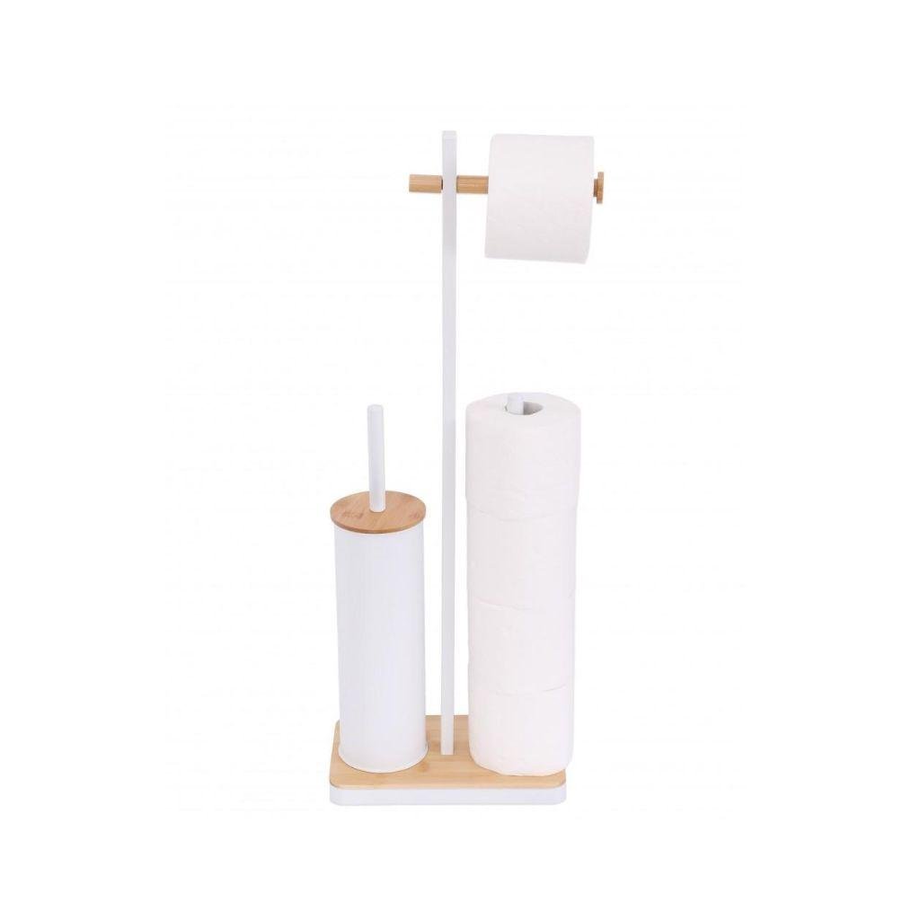 Erga Yami, držák toaletního papíru s WC kartáčem a zásobníkem na papír, bílá-hnědá, ERG-YKA-P.YAMI-WHT
