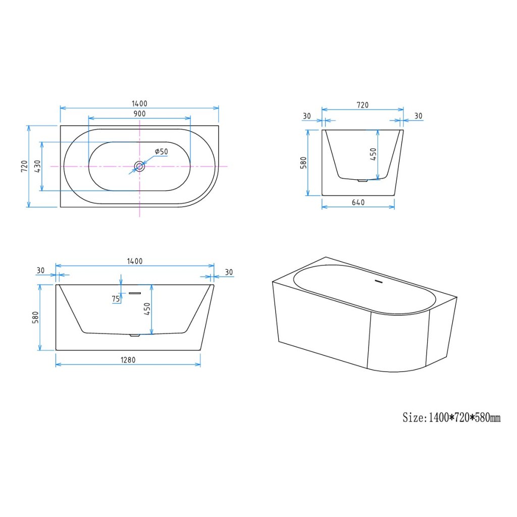 poznámka: ilustrační fotky, nabízený produkt se prodává s bílou lesklou odtokovou zátkou typ ClickClack v barvě vany a vyfrézovaným designovým přepadovým otvorem pro snadné doladění koupelnových prvků. Bílou odtokovou zátku lze vyměnit za jinou barvu pro sladění s baterií nebo jinými koupelnovými doplňky (viz související produkty).
