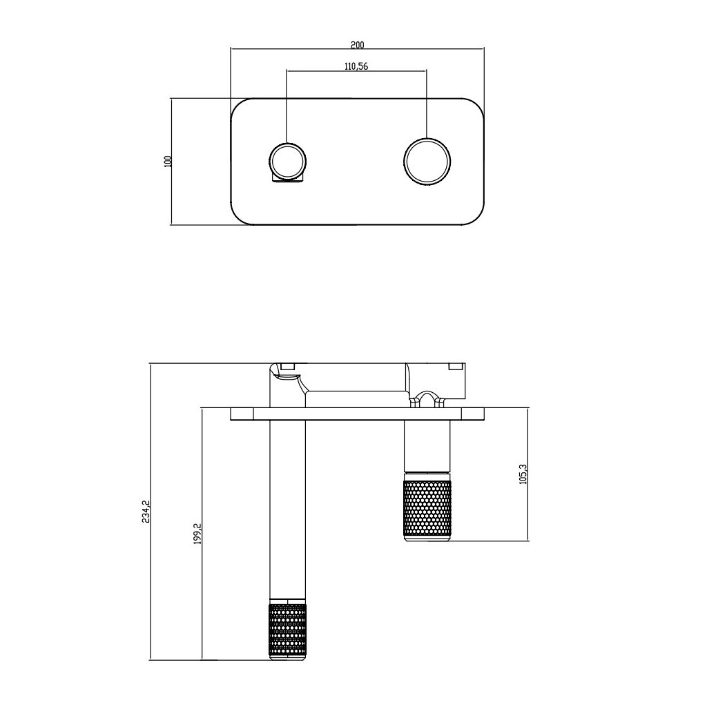 - Rozteč mezi výtokem a pákou: 110,56 mm
