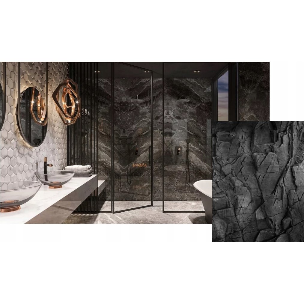 Velkou výhodou podomítkové umyvadlové baterie ARDESIA je minimalizace vnějších prvků, která zabraňuje poškození a usnadňuje její udržování v čistotě. Černá matná barva doplněná lesklým růžovým zlatem pokrývajícím rukojeť a špičkou výtoku dodává baterii eleganci a prestiž. Funkční – vybaveno rukojetí joysticku – dokonale ladí s nejmódnějšími trendy v uspořádání koupelen.