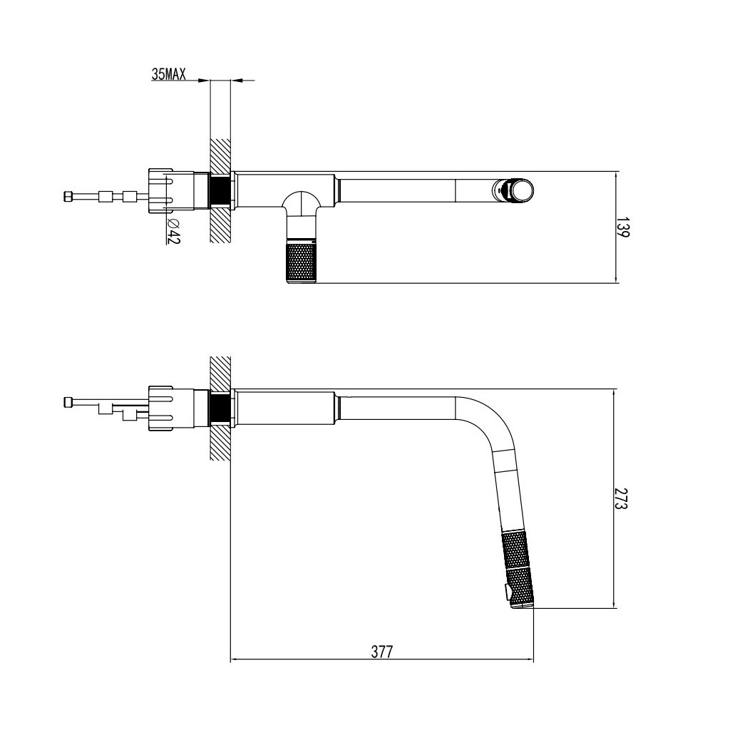 - Typ výtoku: otočné rameno, výsuvná výlevka