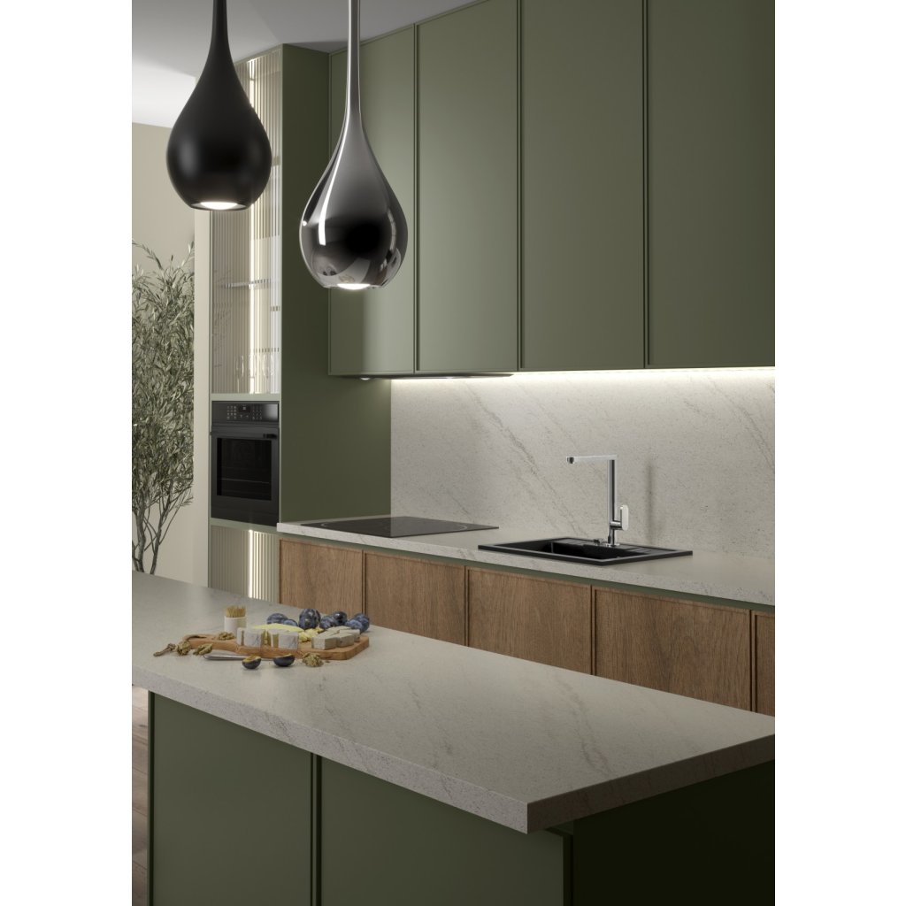 Baterie je moderní a energeticky efektivní. Je vybaven výtokem s dlouhým ramenem, namontovaným na těle v pravém úhlu a plochou rukojetí se zaobleným tvarem. Minimalistická forma dokonale zapadne do moderních interiérů. Funkční – má provzdušňovací provzdušňování proudu vody a keramický regulátor studeného startu, díky kterému bude studená voda po spuštění proudit z výtoku. Chceme-li získat teplý proud, budeme muset otočit rukojeť o 90 stupňů. Otočný výtok s výsuvnou rozprašovací rukojetí nám také poskytne naprostou volnost při mytí nebo plnění velkého nádobí vodou. Tato řešení umožní nejen šetřit energii, ale také snižovat výdaje domácností.