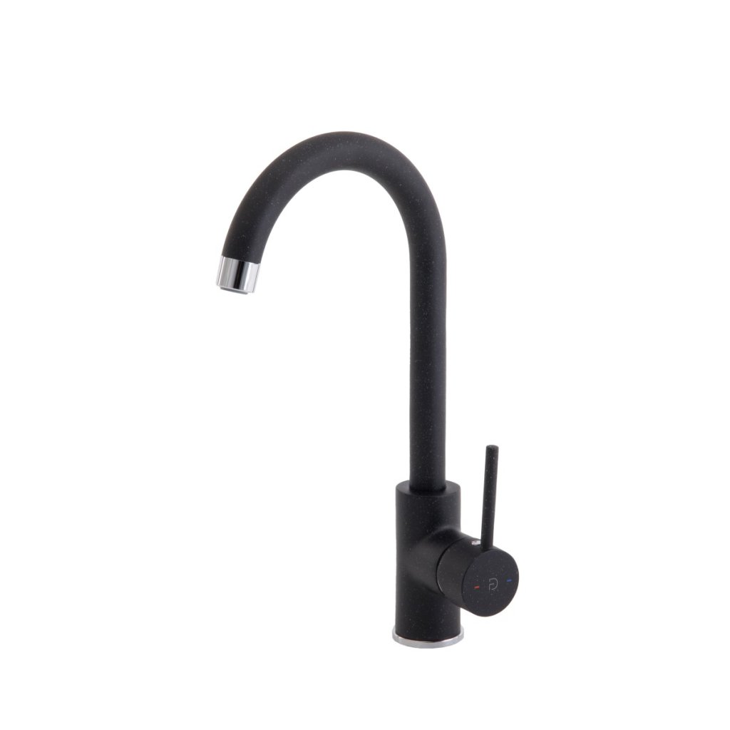 Baterie patří do kolekce elegantních kuchyňských baterií určených pro žulové dřezy. Vodovodní baterie dostupné v módních barvách: písek a grafit dokonale harmonizují s různými styly uspořádání. Dekorativní povrch, připomínající žulovou strukturu, a působivé, zaoblené formy kohoutku dobře ladí se žulovými dřezy z kolekce CARIOCA. Baterie v grafitové barvě zdůrazní jedinečný charakter naší kuchyně. Otočné rameno nám poskytne pohodlné mytí.