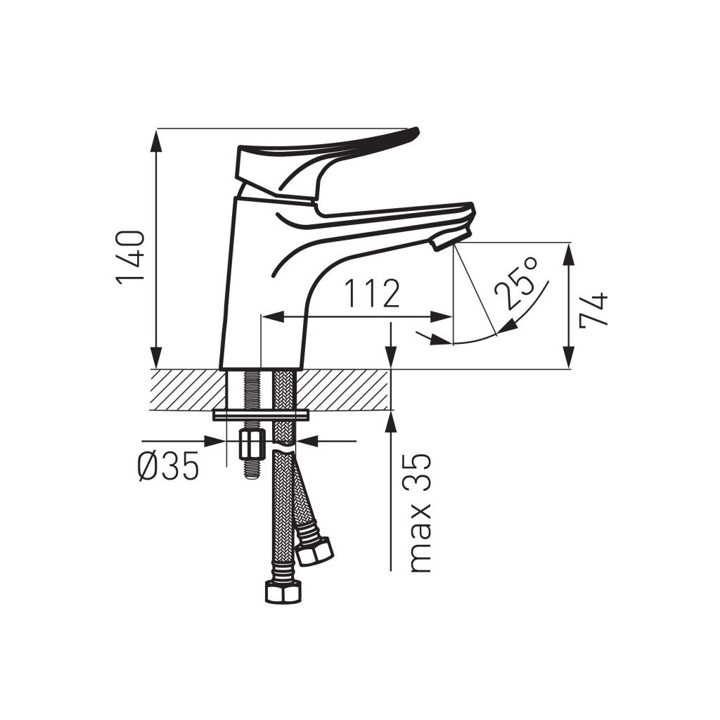 - Výška odtoku vody: 74 mm