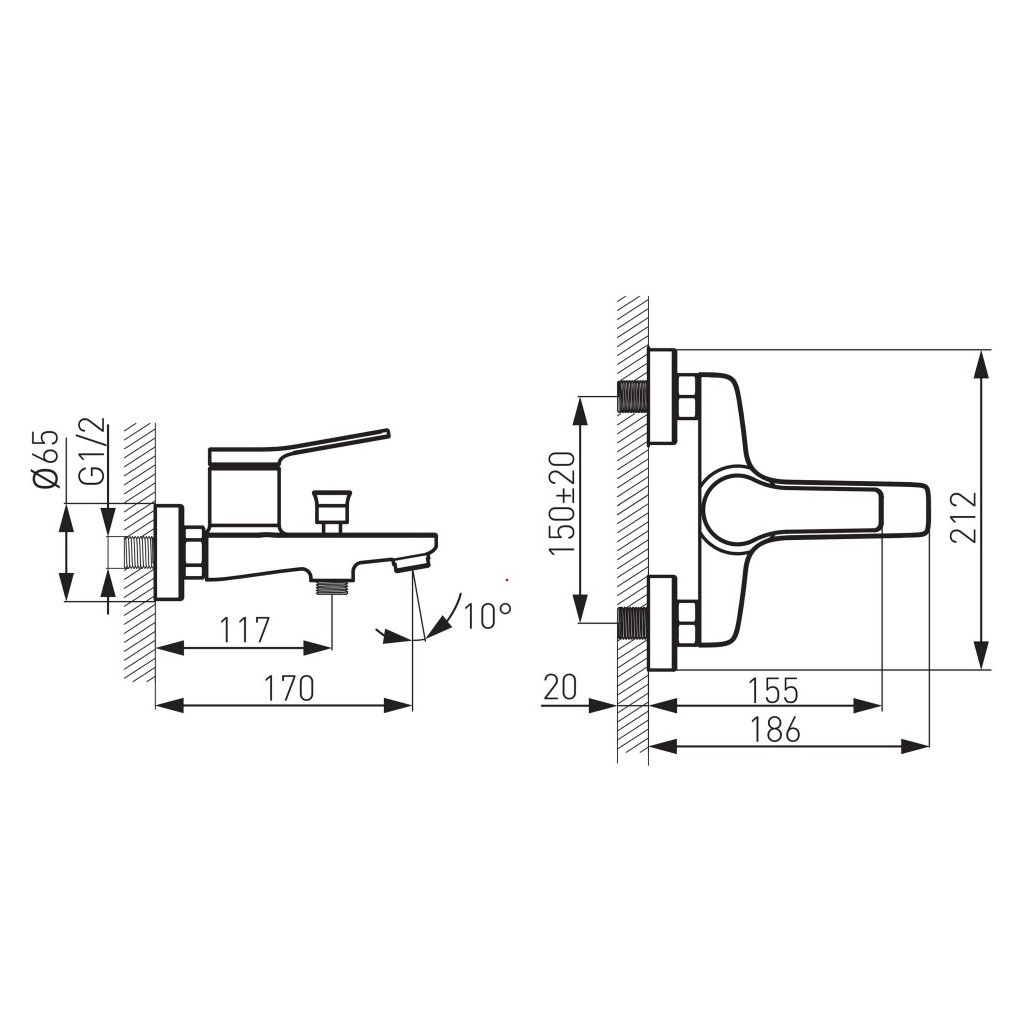 - Typ: nástěnná vanová baterie bez sprchové soupravy