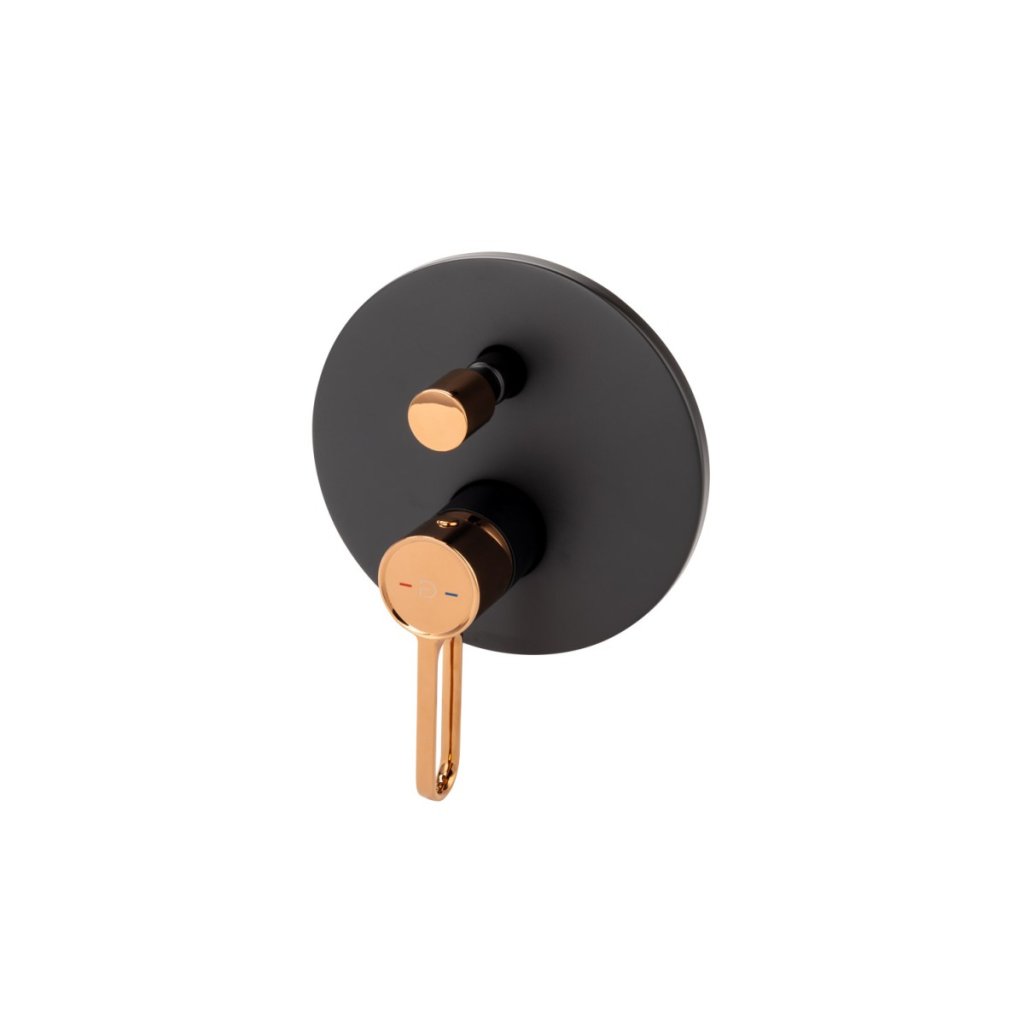 F-Design Zaffiro, podomítková 2-výstupová vanová/sprchová baterie, černá matně-růžové zlato, FD1-ZFR-7P-25