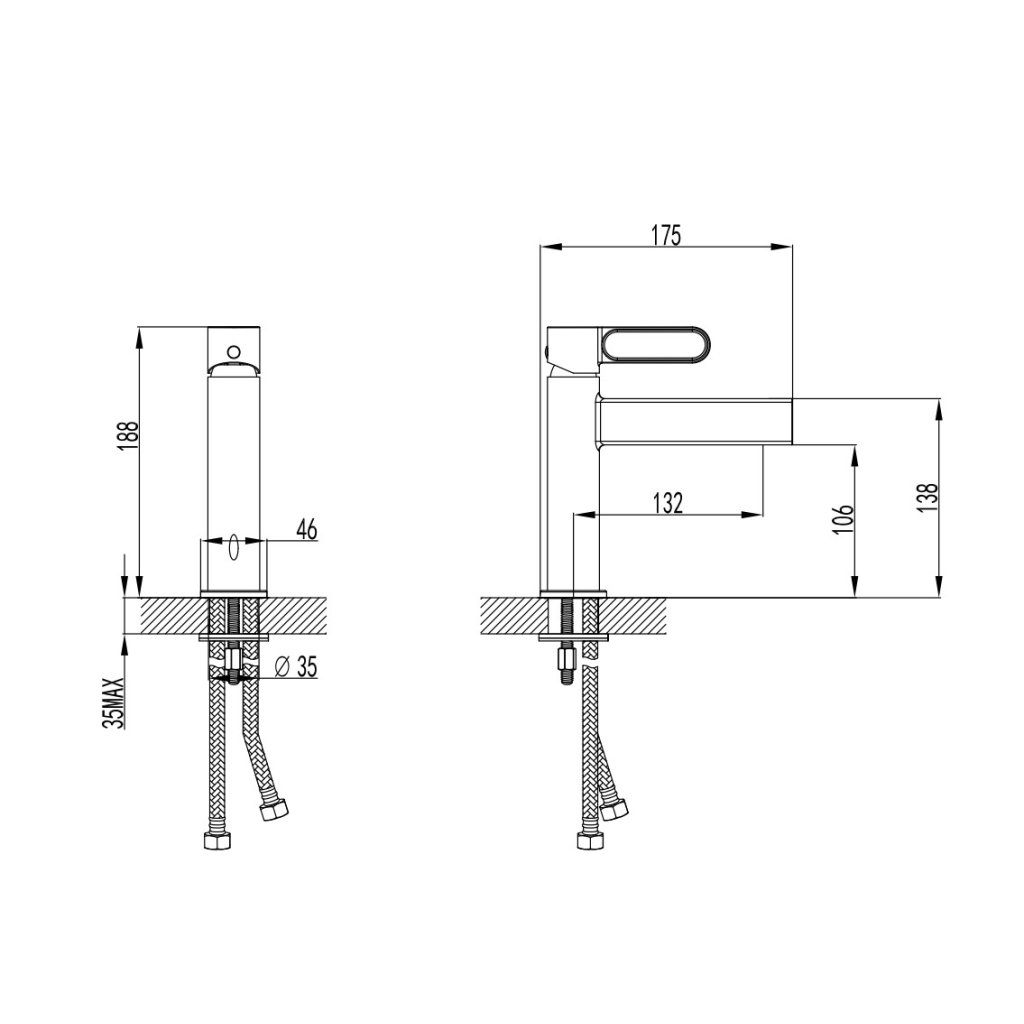 Umyvadlová baterie Zaffiro je typ armatury, která dokonale zapadá do vybavení v moderním stylu s průmyslovými prvky: lampy v drátěných rámech ve formě jednoduchých geometrických útvarů, grafitová umyvadla, podlaha imitující beton atp. Zaffirovými zvláštnostmi jsou válcovité tělo, jedinečná forma založená na kontrastech obdélníku a oválu a módní barevné schéma – černá doplněná akcentem růžového zlata. Funkční – umožňuje rychlé a přesné nastavení proudu odtoku vody. Dodává se s černou odtokovou zátkou.