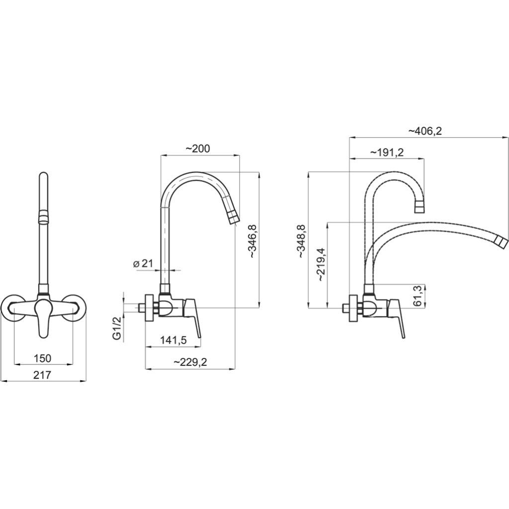DŘEZOVÁ BATERIE S ELASTICKÝM RAMENEM 150MM, ČERNÁ-CHROM
