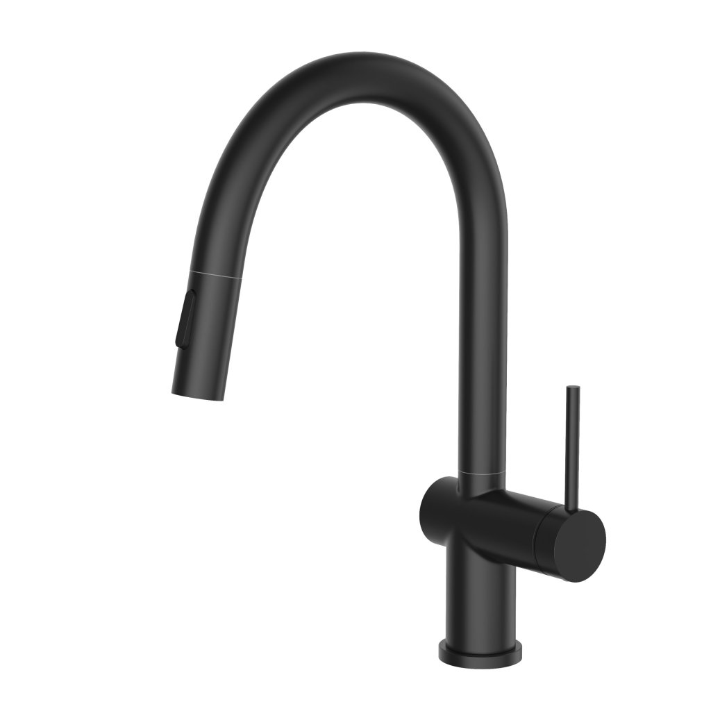 Moderní kuchyňská baterie ANA v elegantním černém matném provedení se vyznačuje minimalistickým designem, který dodá každé kuchyni čistý a nadčasový vzhled. Díky hladkému povrchu a preciznímu zpracování působí luxusně, ale zároveň zůstává maximálně praktická při každodenním používání.