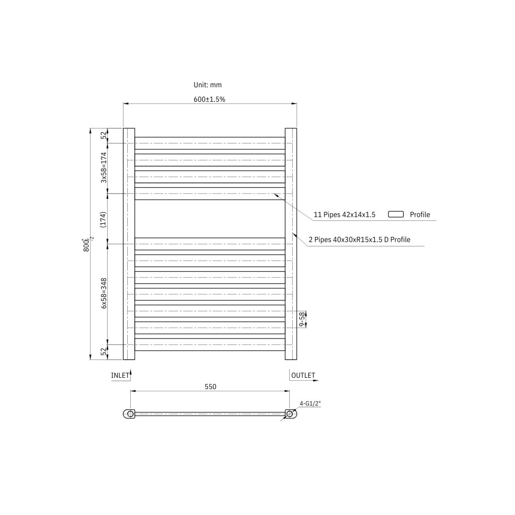 Gamma Artic, topné těleso 600x800 mm, 382 W, černá matná, GMA-ARCT-8060-BK