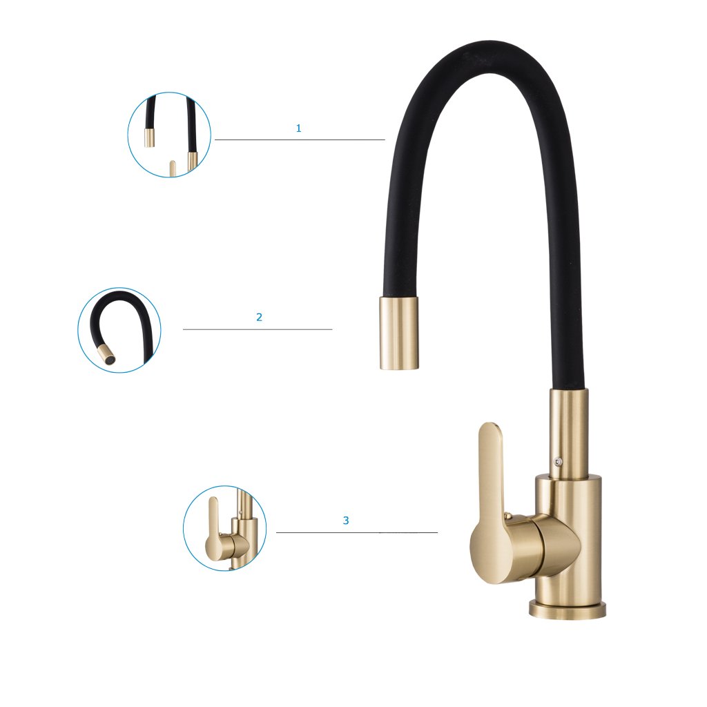 Gamma Flex 2000, stojánková dřezová baterie s flexibilním ramenem, černá-zlatá matná, GMA-BFX-2000BGD