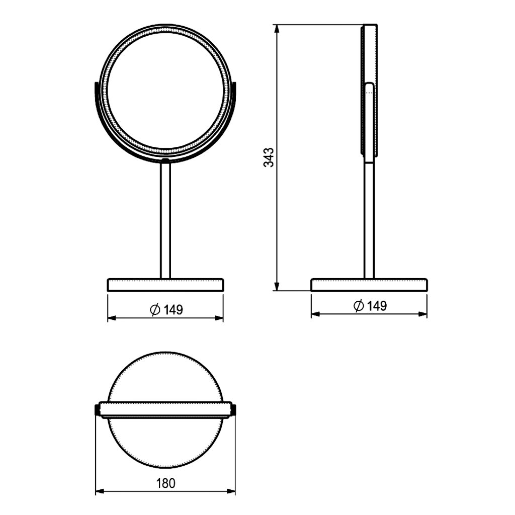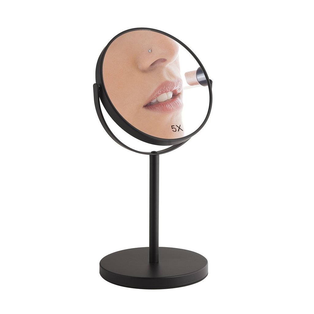 Gedy, ANNA kosmetické zrcadlo na postavení, průměr 163mm, oboustranné, černá mat, 211214