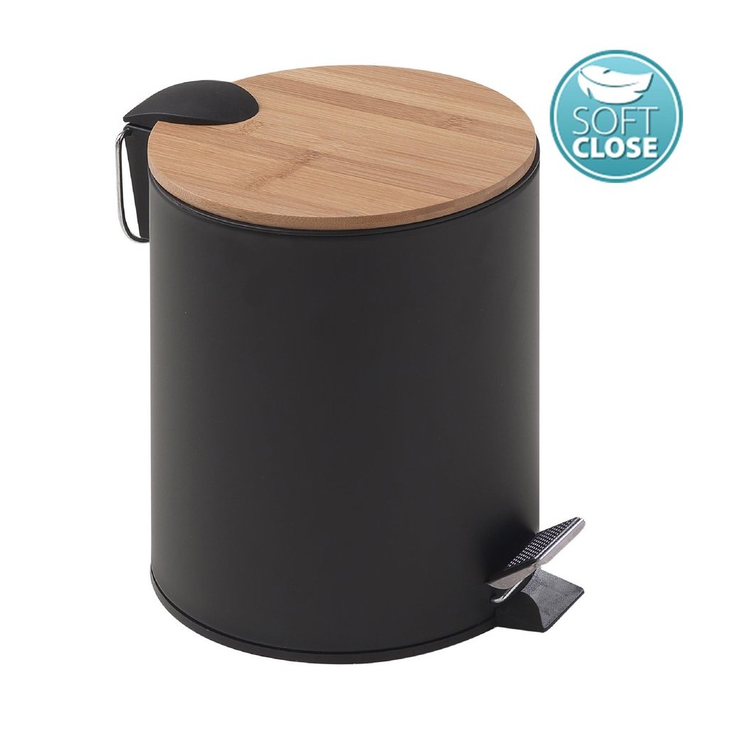 Gedy, KENTA odpadkový koš 5l, Soft Close, černá mat/bambus, 1409
