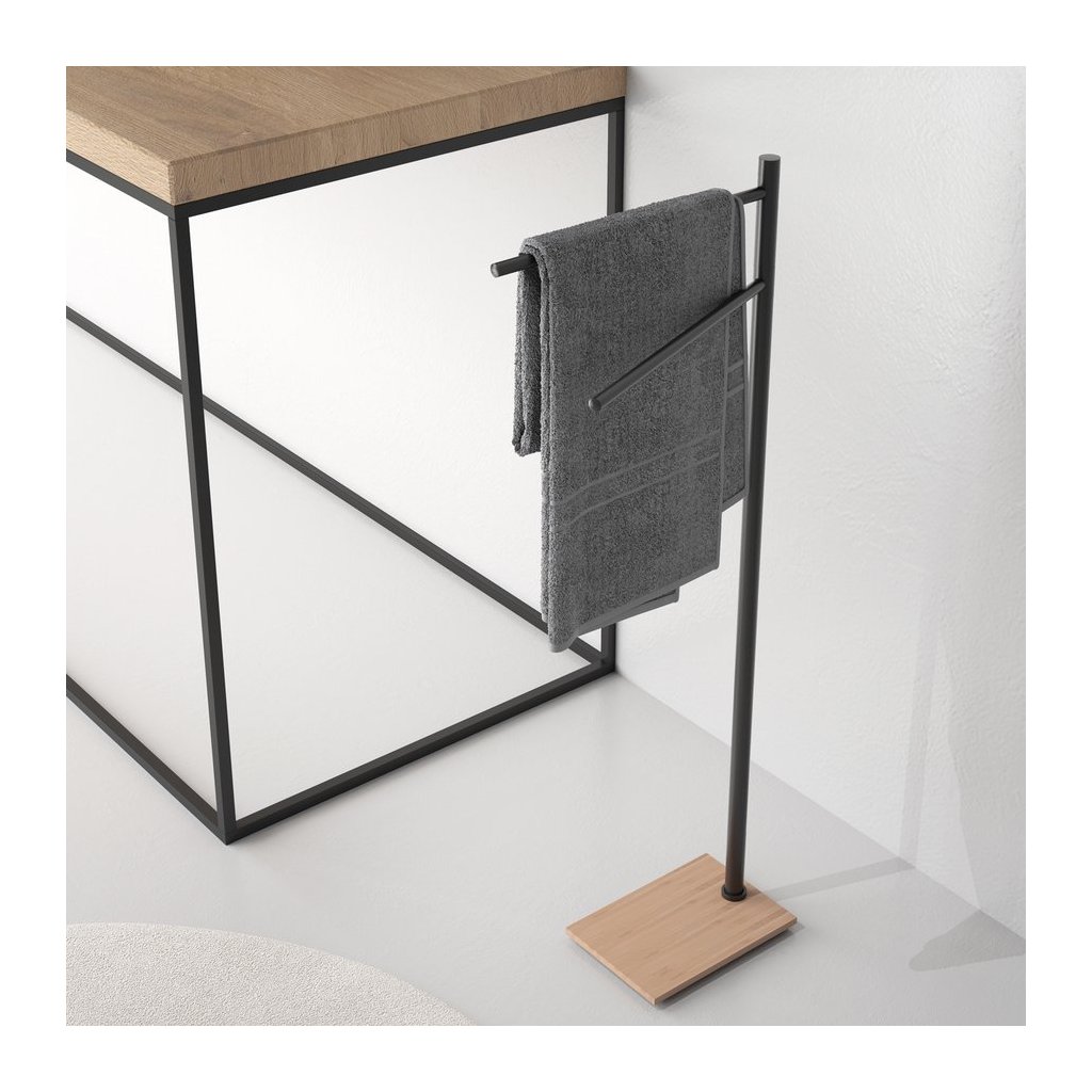 Gedy, TRILLY Stojan s držákem ručníků, hranatý, černá matná/bambus, TR3141