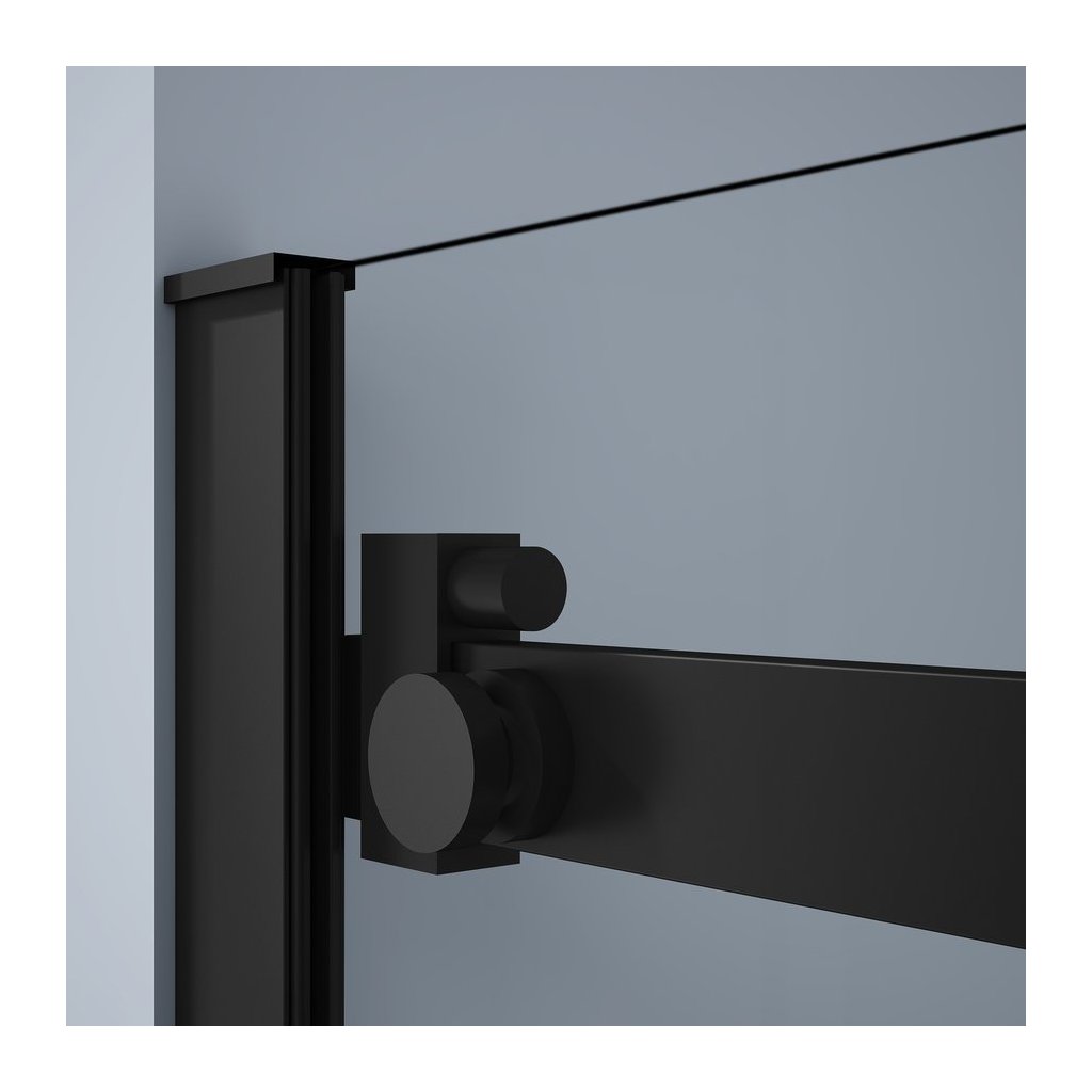 Dveře z bezpečnostního skla jsou zavěšeny a jejich pohyb usměrňuje vodící díl na podlaze. Je tak umožněn bezbariérový vstup.