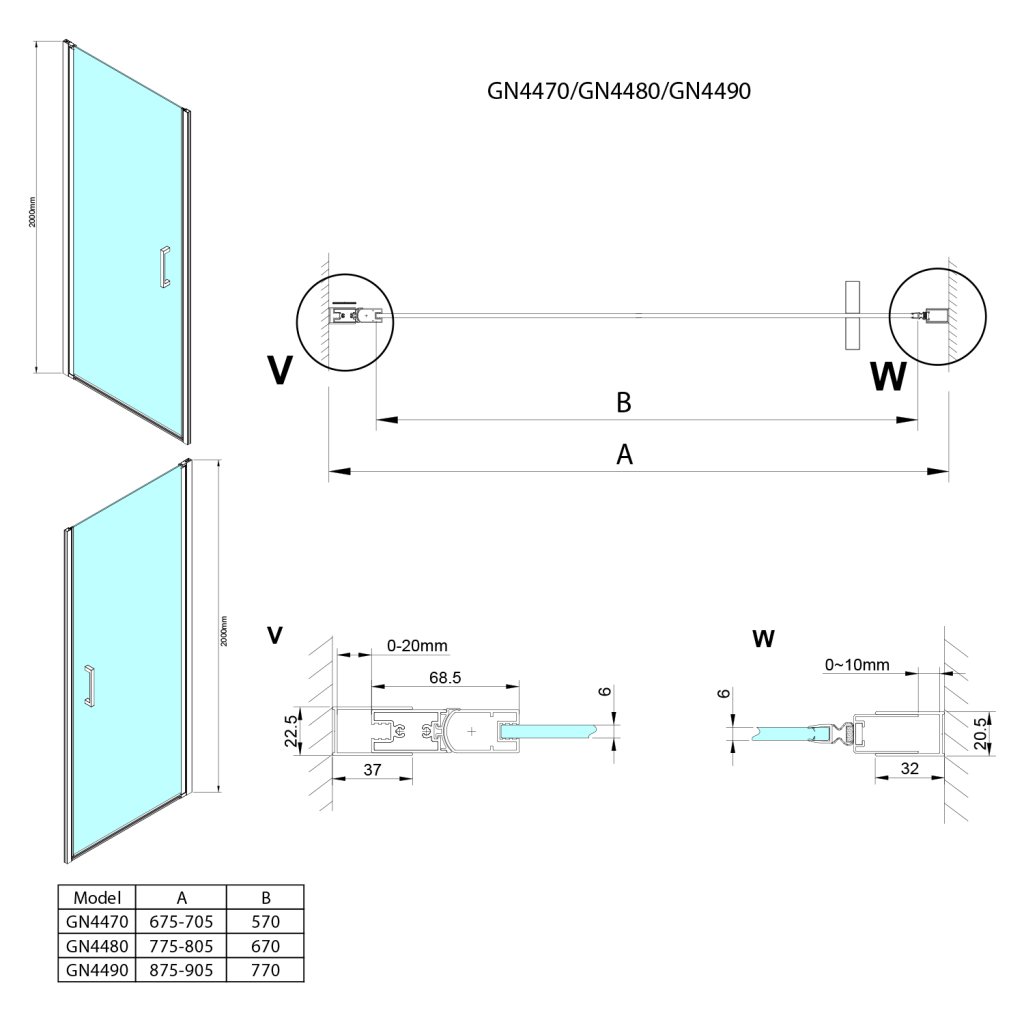 - Dveře otevírací 700, 800 a 900 mm jsou jednodílné a umožňují maximální šířku vstupu