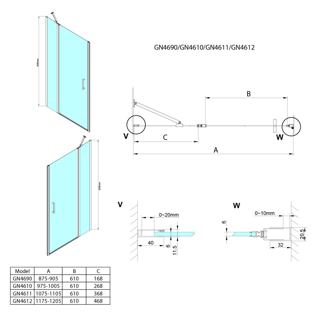 - Dveře skládací 700 - 900 mm umožňují složení ke stěně a úsporu místa v koupelně