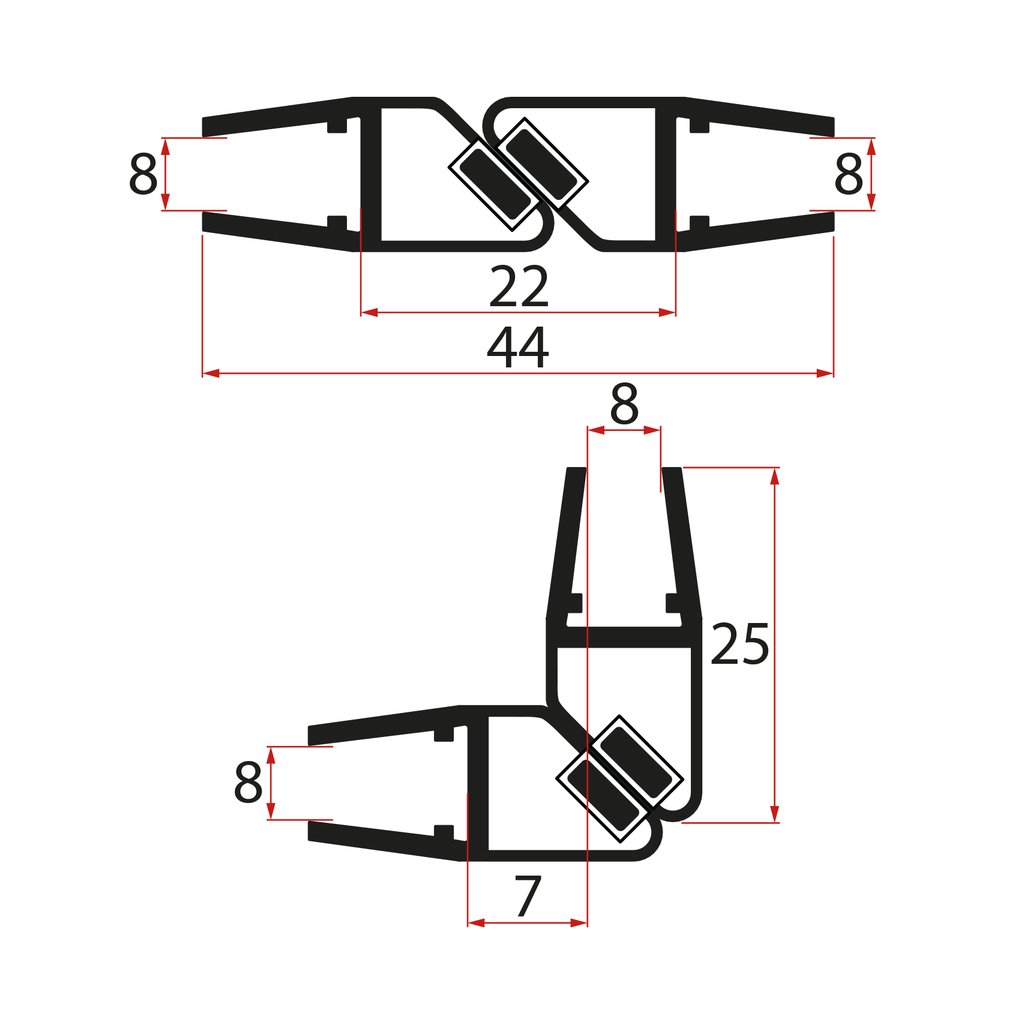 Gelco, Set magnetických těsnění 45° pro sklo 8/8mm, 2000mm, černá, NDGDB33