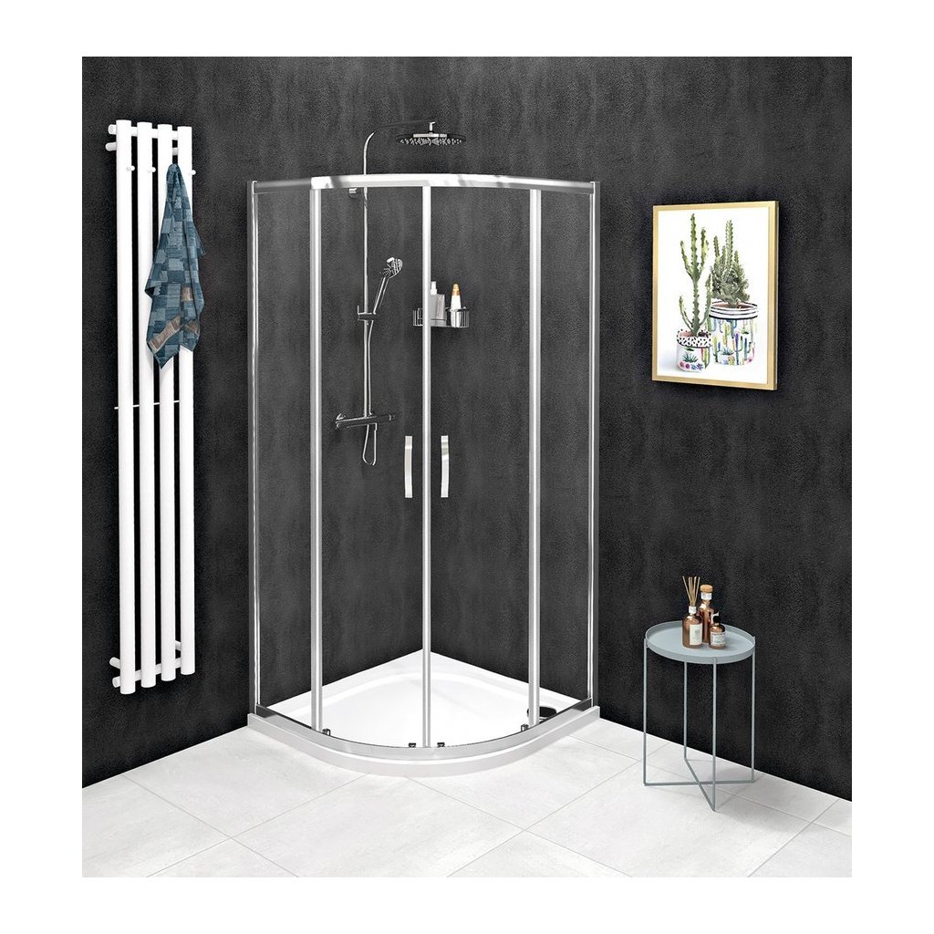 - Čtvrtkruhové zástěny a čtvrtkruhové zástěny s prodlouženou stěnou s posuvnými dveřmi