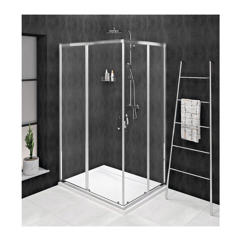 - Čtvercové a obdélníkové zástěny s rohovým vstupem vytvoříte spojením dvou posuvných dveří pro rohový vstup