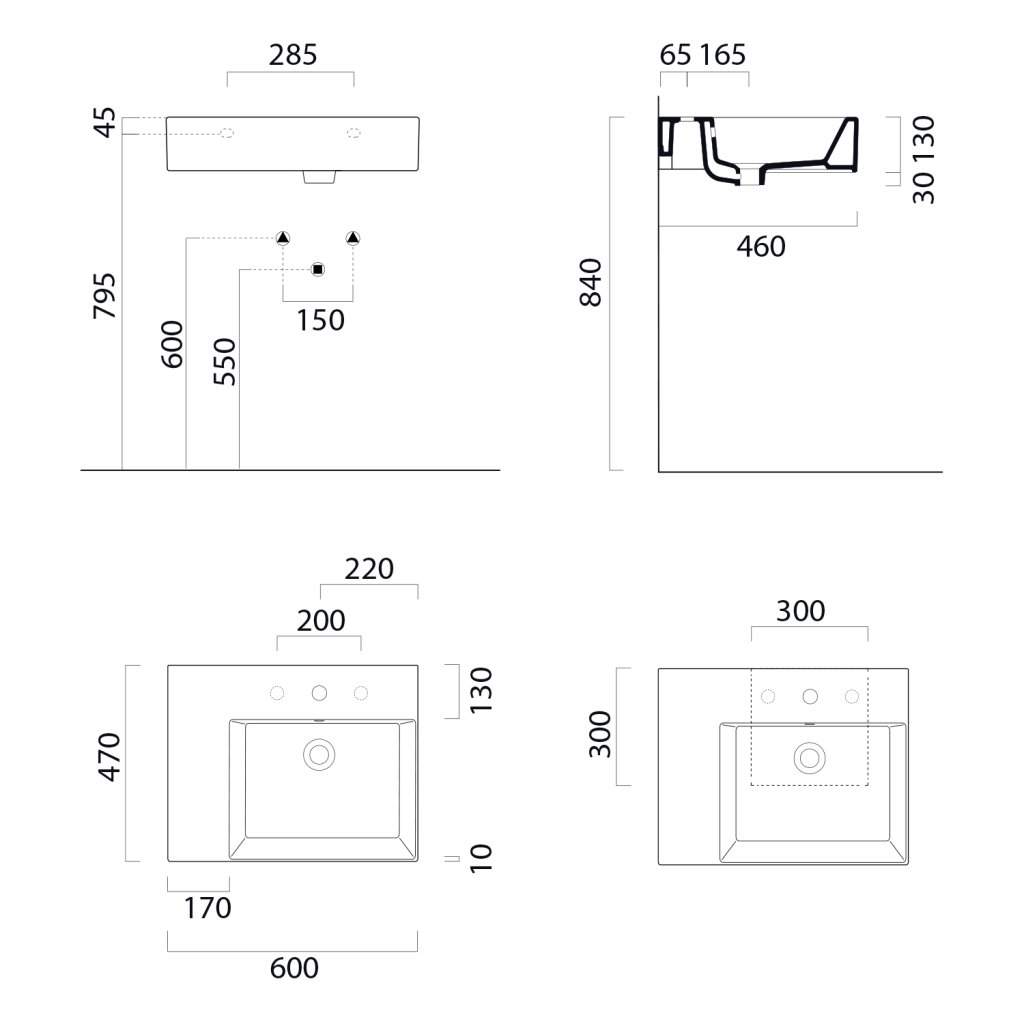 Součástí série umyvadel jsou navíc dvě kulatá umyvadla na desku a dvě obdélníková vestavná umyvadla, všechna s velmi štíhlými hranami.
