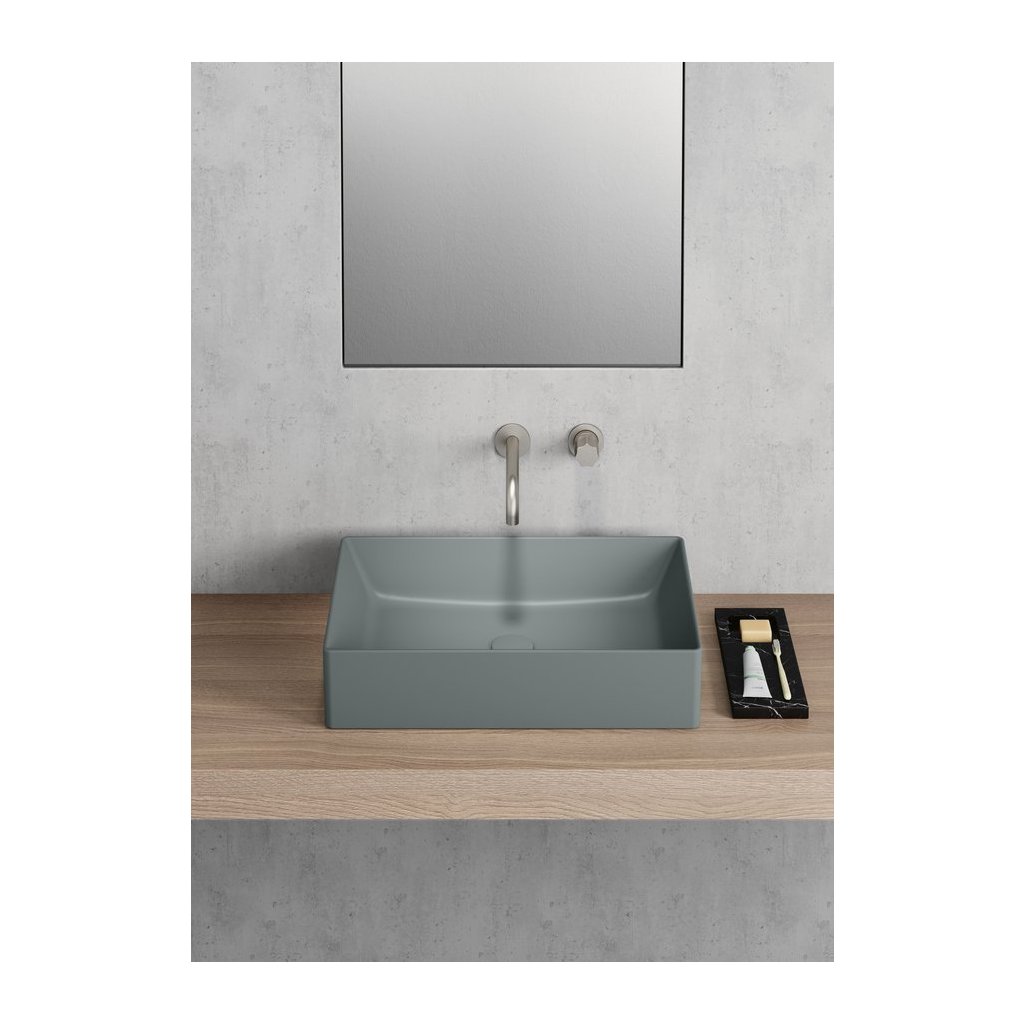 - Hranatá umyvadla s decentně zaoblenými rohy a štíhlou hranou