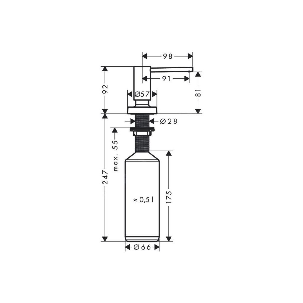Hansgrohe, příslušenství, dávkovač mycích prostředků A51, 500 ml, chromová, HAN-40448000