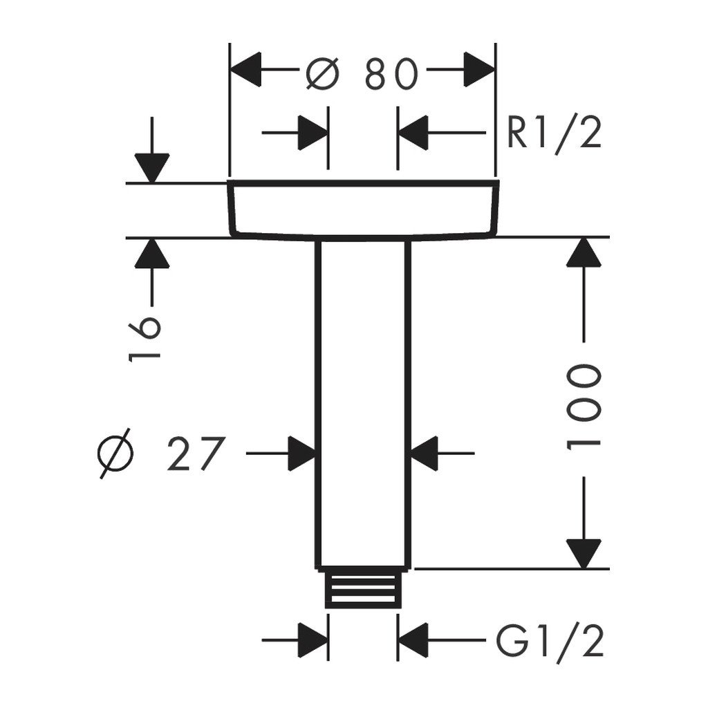 Hansgrohe, přívod od stropu S 100 mm, chromová, HAN-27393000