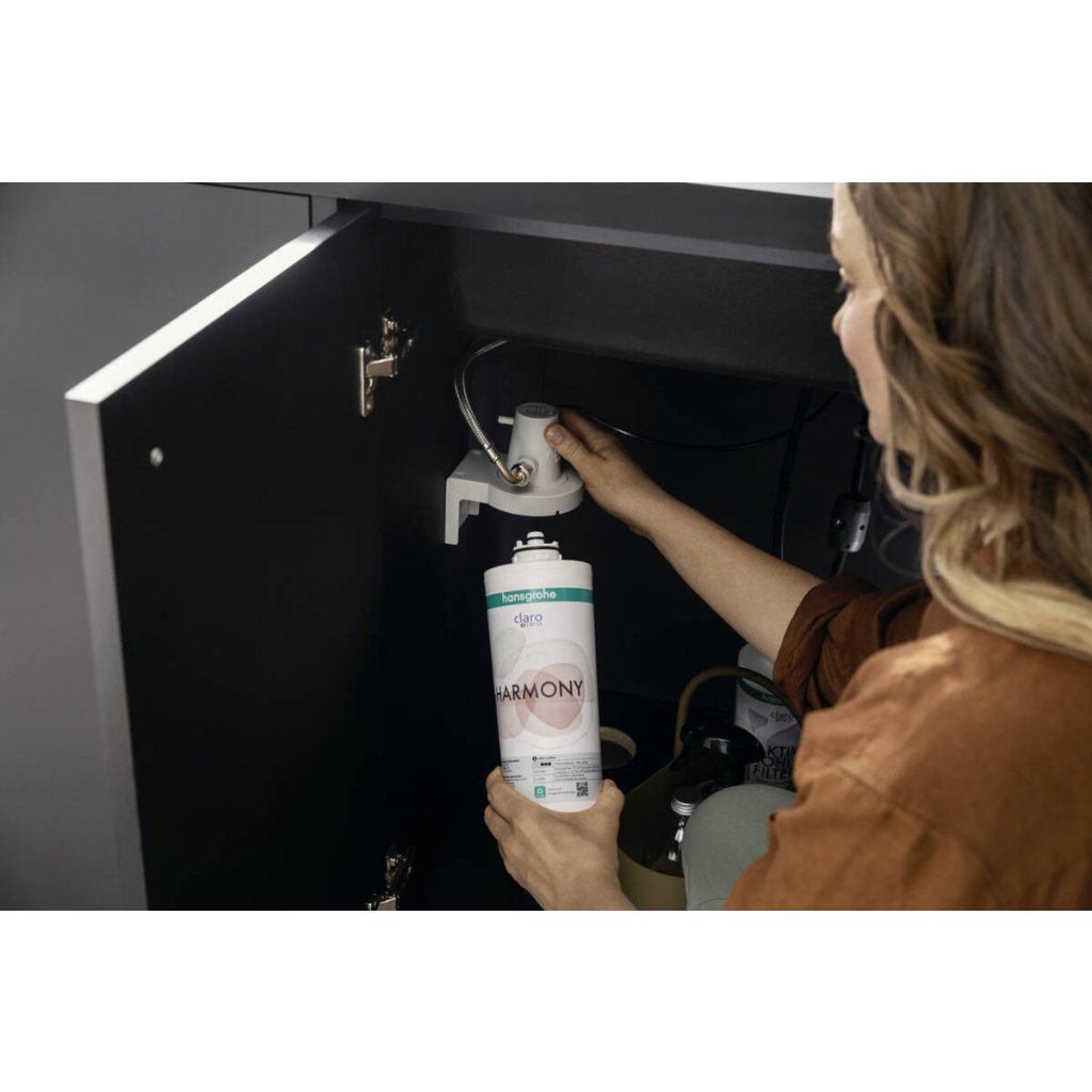 - Zahrnuje: páková kuchyňská baterie, hlavice filtru, mineralizační kartuše s filtrem Harmony