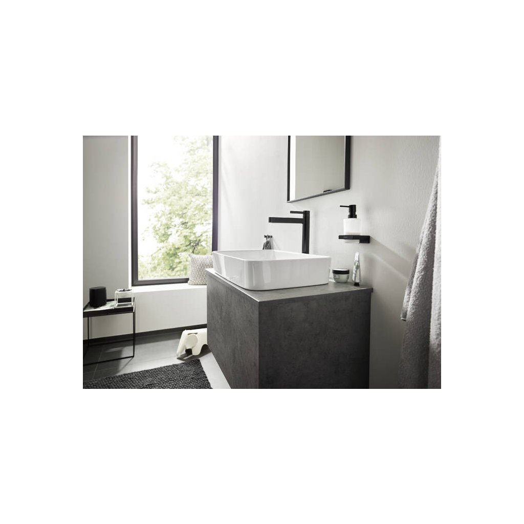Hansgrohe Finoris je nádherná a dokonale štíhlá umyvadlová baterie , která se zrodila, aby doplnila umyvadlovou mísu a vytvořila s ní ve vaší koupelně dokonalý celek. Je stylová, elegantní a designová. Umyvadlová baterie hansgrohe Finoris je navržena v luxusní matné černé barvě . Dominantním prvkem je především stylový výtok o délce 208 mm. Výška této umyvadlové baterie je 367 mm a její komfortní zóna je 264 mm. Díky těmto velkorysým rozměrům se tato umyvadlová baterie perfektně hodí k umyvadlové míse. Důležitou součástí baterie je špičková keramická kartuše , díky které bude ovládání páky baterie vždy jednoduché. Tato varianta umyvadlové baterie je doplněna uzavíratelnou výpustí push-open.