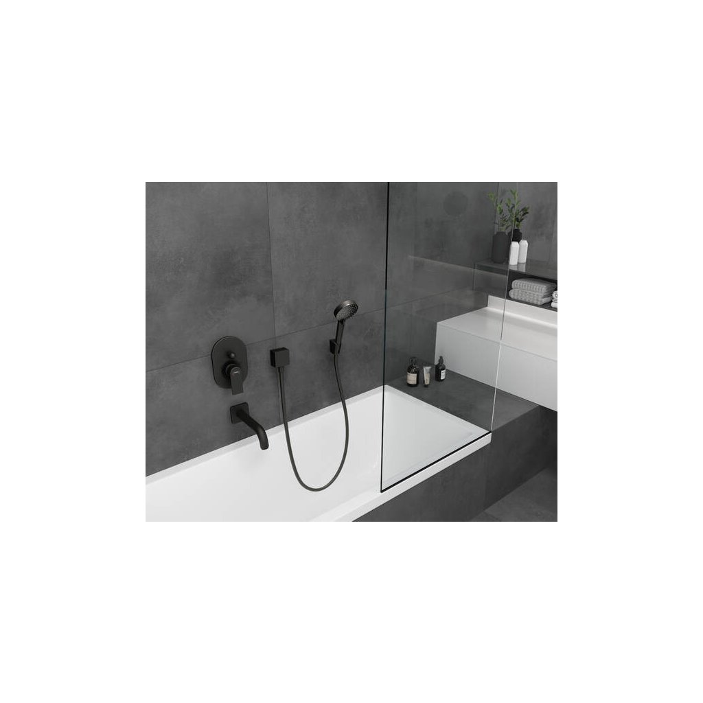 Hansgrohe FixFit, nástěnné kolínko Square se zpětným ventilem, matná černá, HAN-26455670
