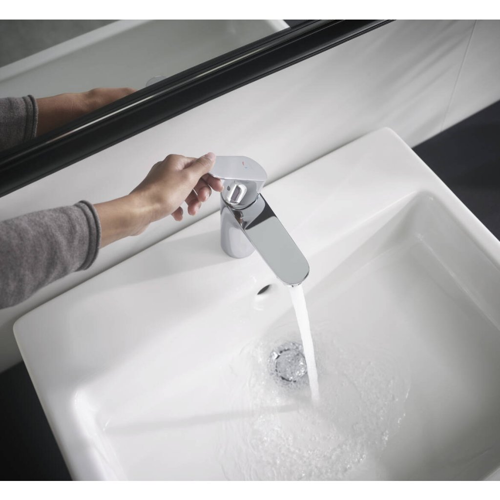 Tato technologie je šetrná vůči životnímu prostředí i vůči Vaší peněžence. Při středním nastavení rukojeti protéká výhradně studená voda, zatímco u standardních baterií se ve středním nastavení okamžitě spouští průtokový ohřívač nebo cirkulační čerpadlo. U baterií CoolStart se potrubní systém nemusí nutně naplnit teplou vodou. Posunutím páky vlevo dojde ke smíchání s horkou vodou. O výšce teploty rozhodujete vy. Posun páky doprava je zablokován (s pákou pro teplou vodu lze pohybovat jen doleva). Tím se výrazně snižuje spotřeba energie a tím i emise CO2.