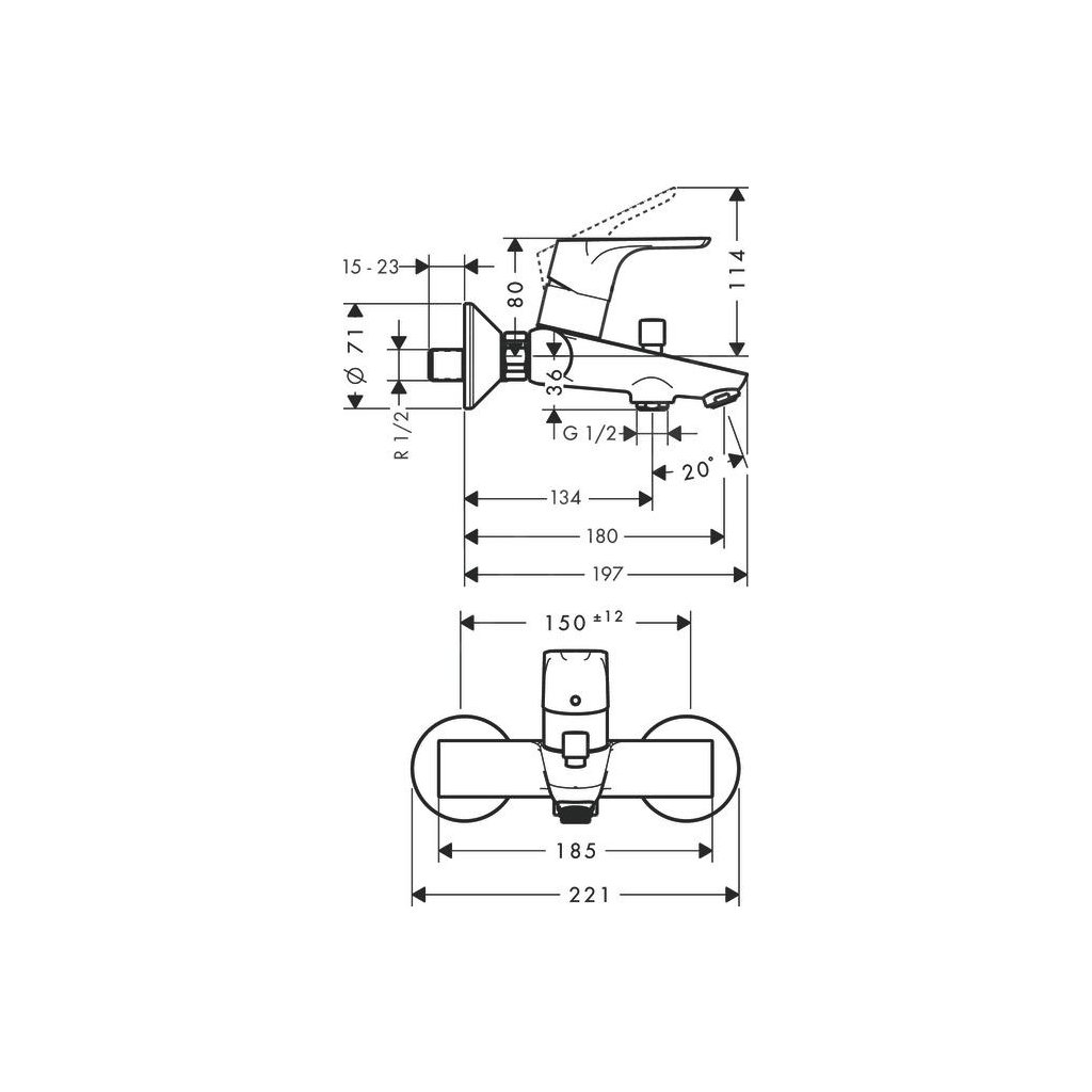 Hansgrohe Focus E2, vanová baterie, chromová, 31940000