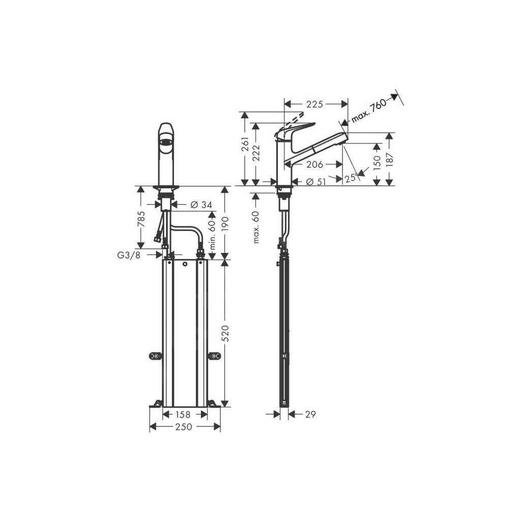 Hansgrohe Focus M42, dřezová baterie M4214-H150 s výsuvnou sprškou, sBOX, vzhled nerezavějící oceli.HAN-71829800