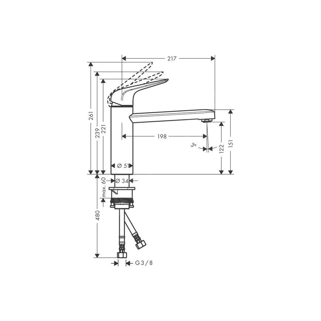 Hansgrohe Focus M42, dřezová baterie M4221-H120 CoolStart Eco, chromová, HAN-71805000