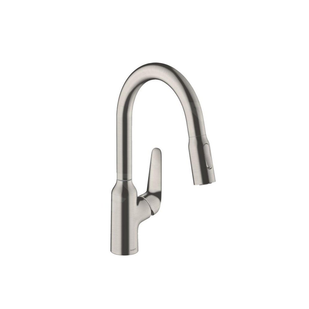 Hansgrohe Focus M42, dřezová baterie M429-H180 s výsuvnou sprškou, vzhled nerezavějící oceli, HAN-71801800