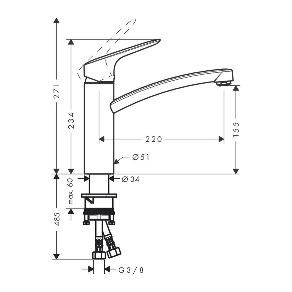 Hansgrohe Logis M31, kuchyňská páková baterie 160, CoolStart, EcoSmart, 1jet, chromová, HAN-71839000