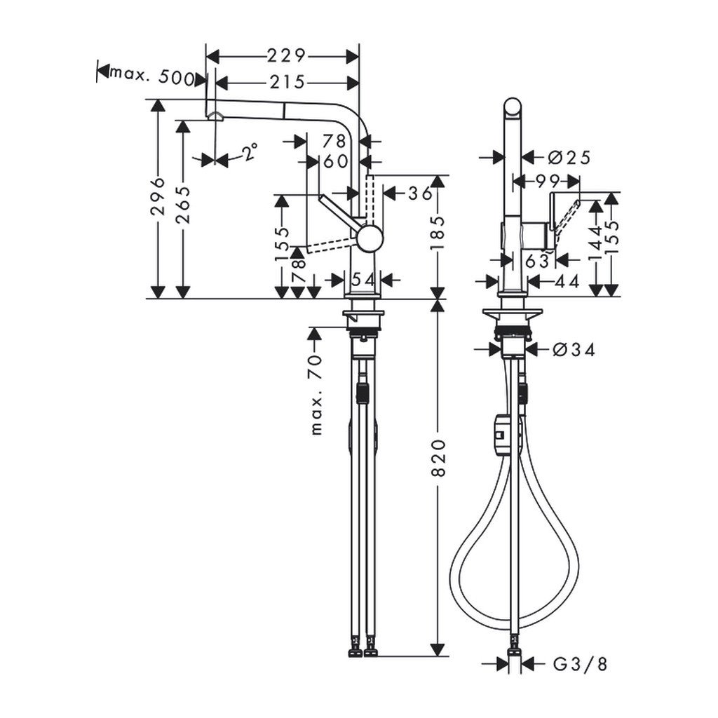 Dřezová baterie hansgrohe Talis je vybavena výsuvnou koncovkou, díky které pohodlně umyjete nádobí, naberete vodu do hrnce nebo opláchnete kuchyňský dřez ve všech jeho zákoutích. Touto kuchyňskou baterií hansgrohe Talis za minutu proteče díky vysoce úsporné technologii EcoSmart pouhých 4,9 litrů vody. Řadí se k vysokým kuchyňským bateriím, její komfortní zóna měří 270 mm. Je otočná ve 4 pozicích - a to v 60°, 110°, 150° nebo 360°.