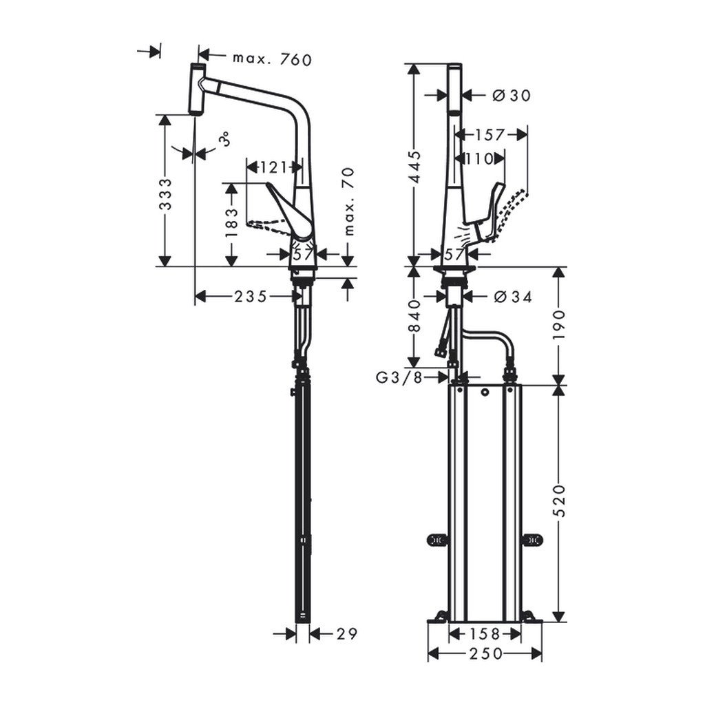 Mezi nejvytíženější kuchyňské pomocníky patří dřezové baterie. Série M71 nabízí kuchyňské baterie, které vynikají nejen svým unikátním vzhledem, ale také řadou praktických prvků. Můžete si vybrat kromě klasické pákové baterie také dvouotvorovou instalaci. Varianty s výsuvnou sprškou uspokojí vaše nejnáročnější očekávání. Dostatečně vysoká výpusť ve tvaru „L“, příjemně dlouhá hadice spršky a možnost střídání vodních proudů vám umožní nejen rychlé a efektivní opláchnutí zeleniny a ovoce, ale také snadné mytí objemných nádob. Pro svoji kuchyni si můžete vybrat z více povrchových designů.
