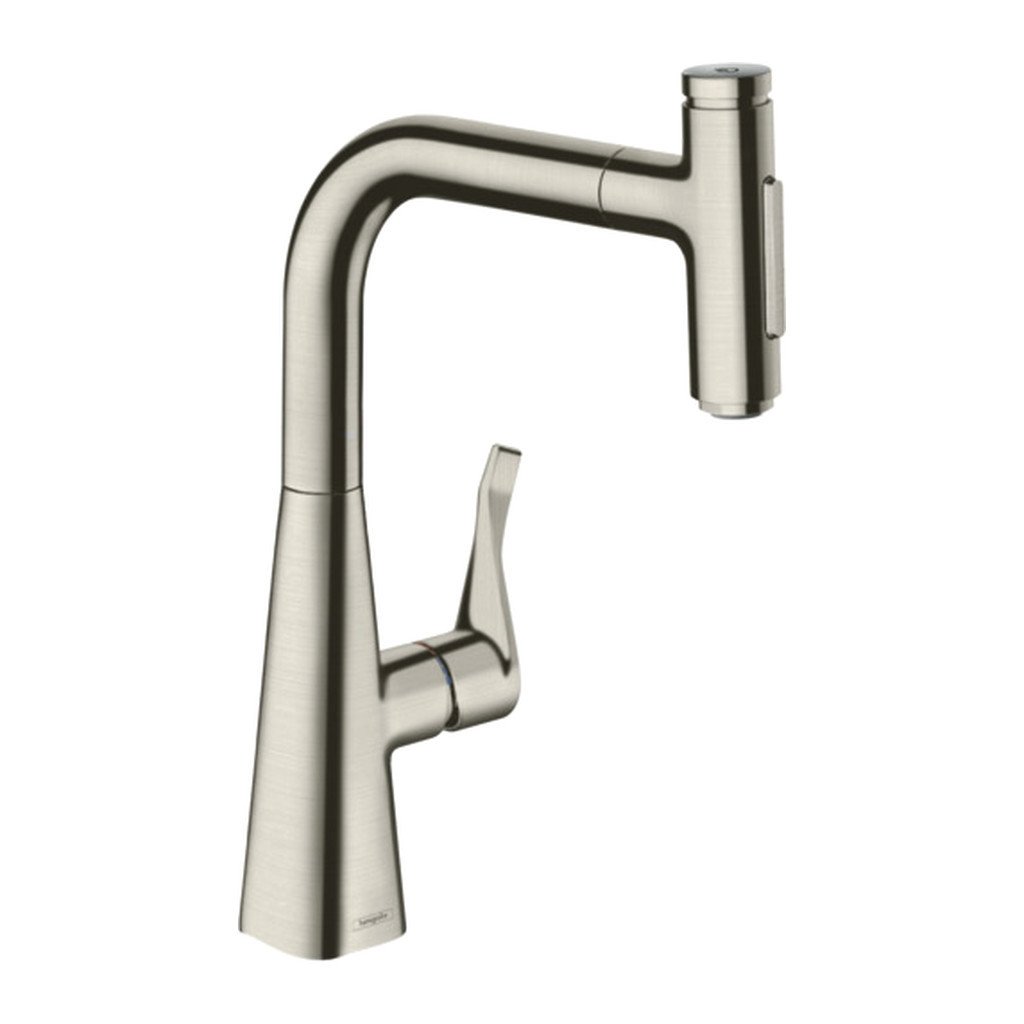 Hansgrohe M71, dřezová baterie Metris Select s výsuvnou sprškou, vzhled nerezový 73822800