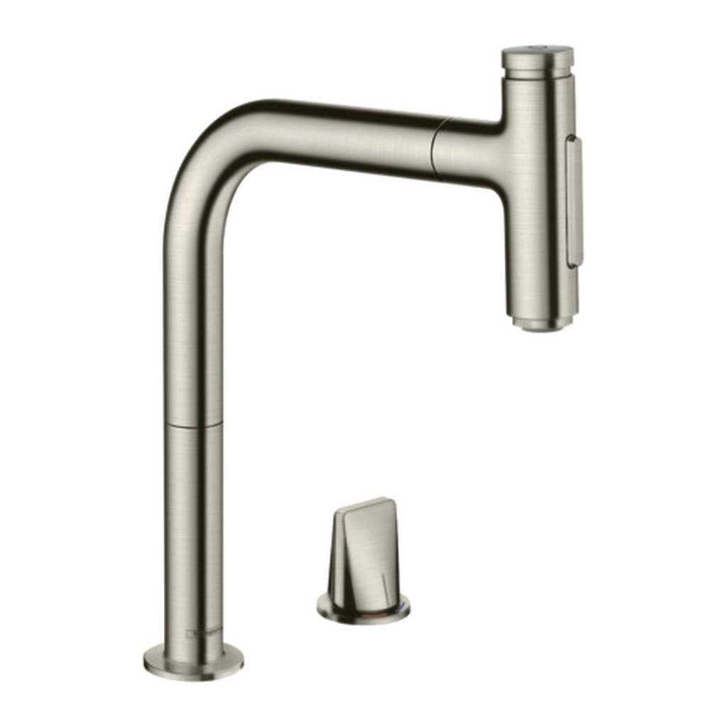 Hansgrohe Metris Select M71, dvouotvorová páková kuchyňská baterie s vytahovací sprškou, vzhled nerezu, HAN-73819800