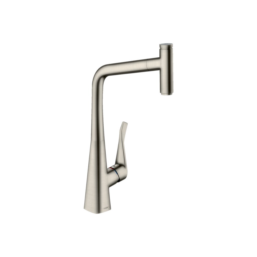 Hansgrohe Metris Select M71, kuchyňská páková baterie 320, vytahovatelný výtok, 1jet, sBox, nerezová, HAN-73803800