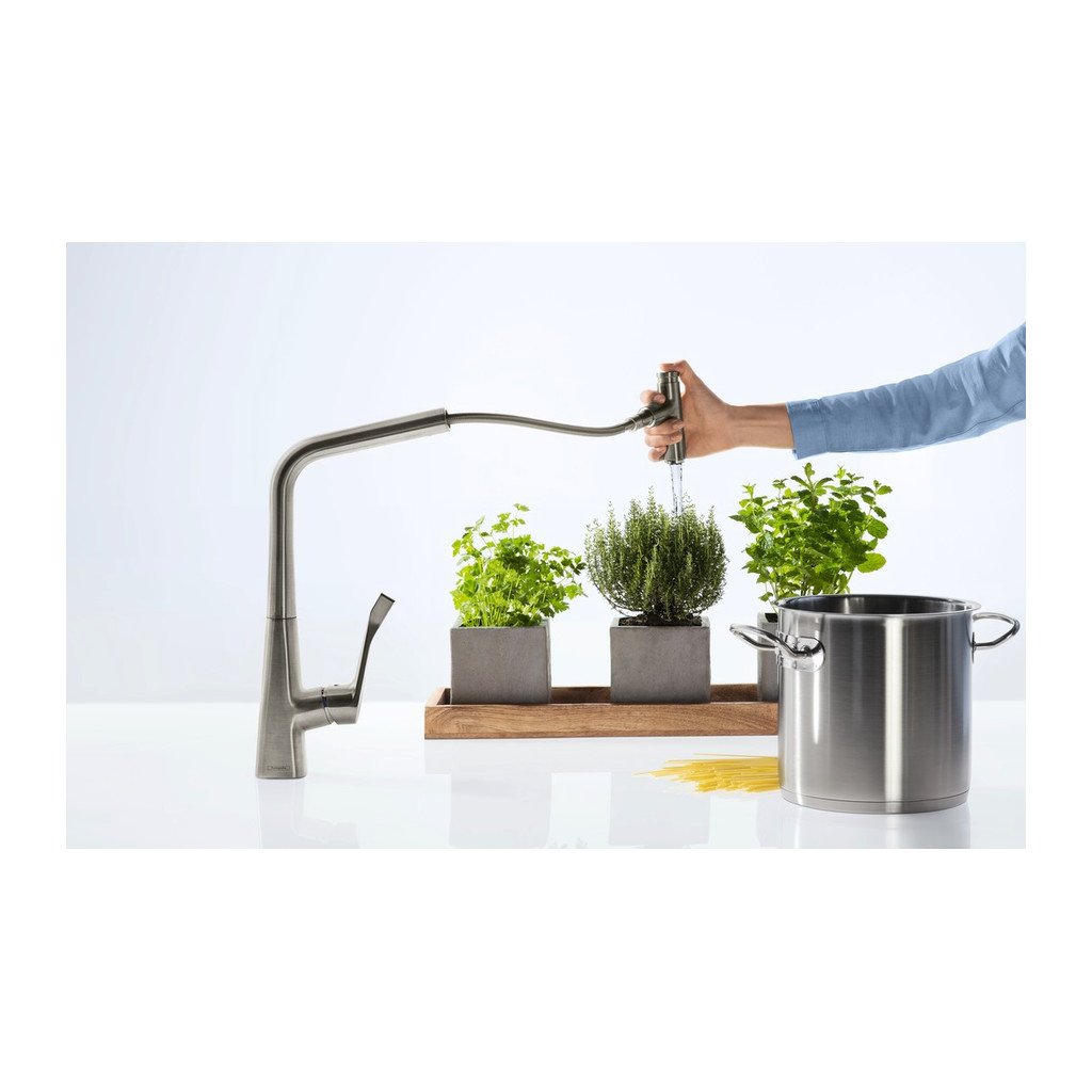 Hansgrohe Metris Select M71, kuchyňská páková baterie 320 s vytahovacím výtokem, 1jet, vzhled nerezu, HAN-14884800